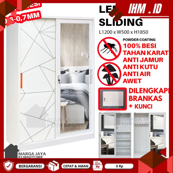 Lemari Pakaian BESI JUMBO Sliding 2 3 Pintu Wardrobe Baju Metal Anti Jamur Anti Kutu Tahan Air Lebih Tahan Karat