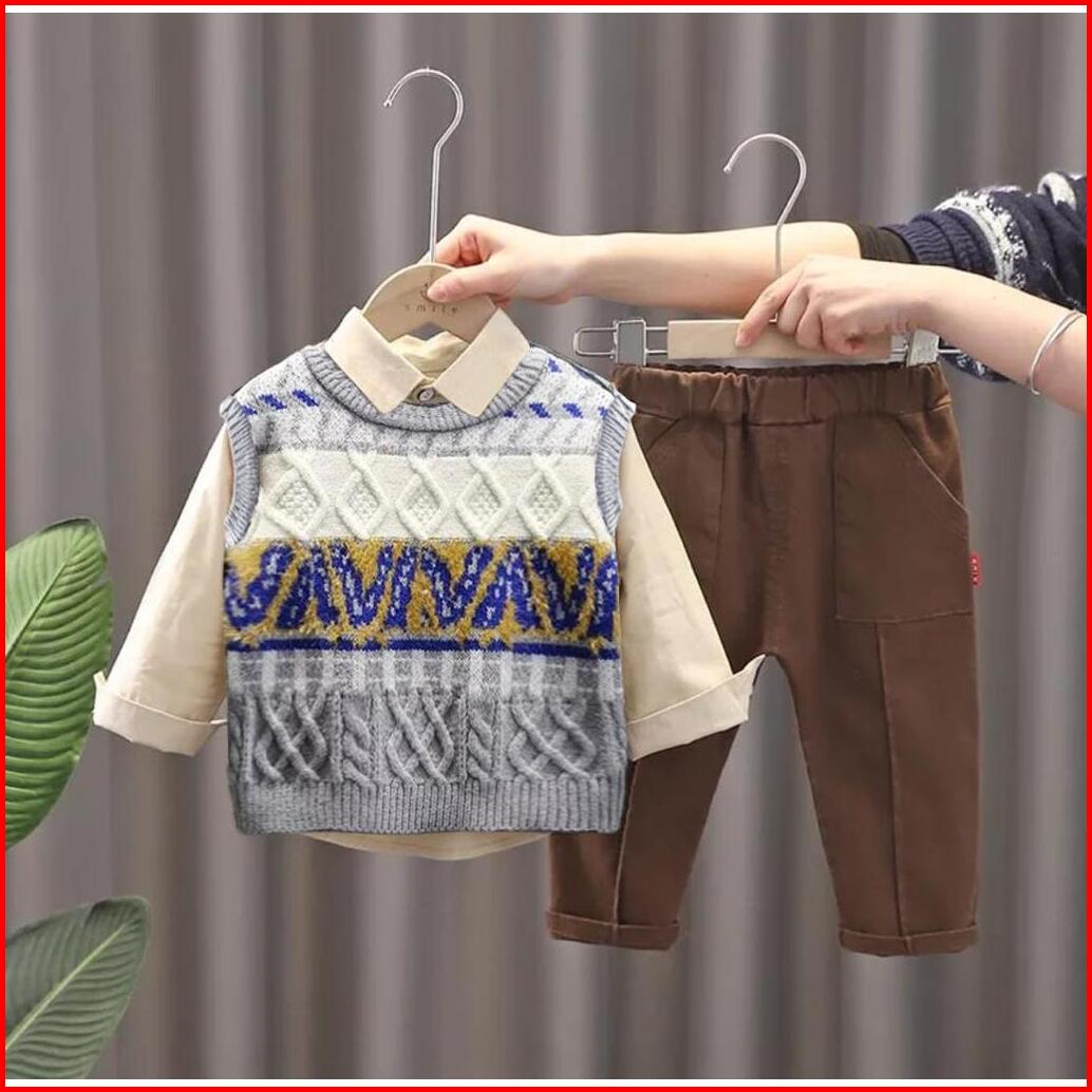 Promo-setelan Anak Kemeja Rajut Anak Setelan 3 In 1 Usia 1-5 Tahun Pakaian Anak Laki Laki Fashion Anak Terbaru