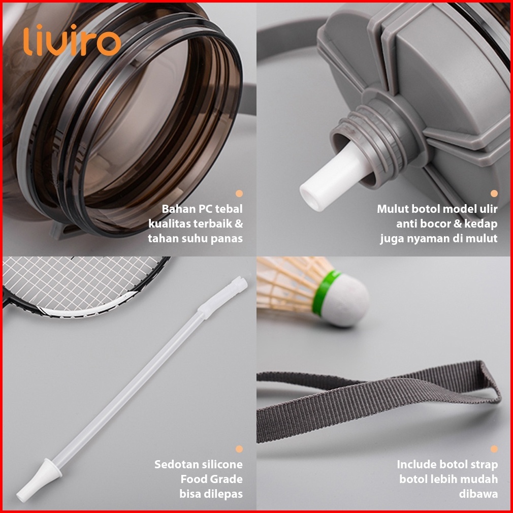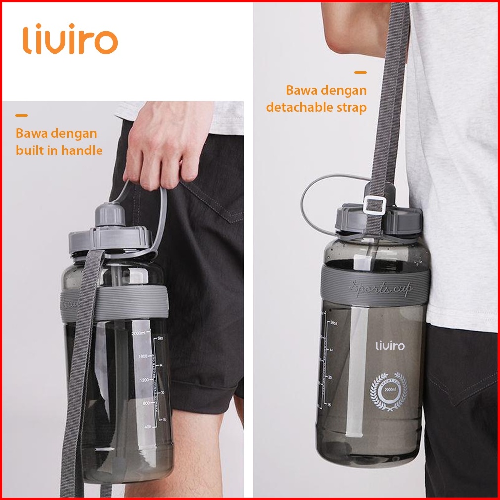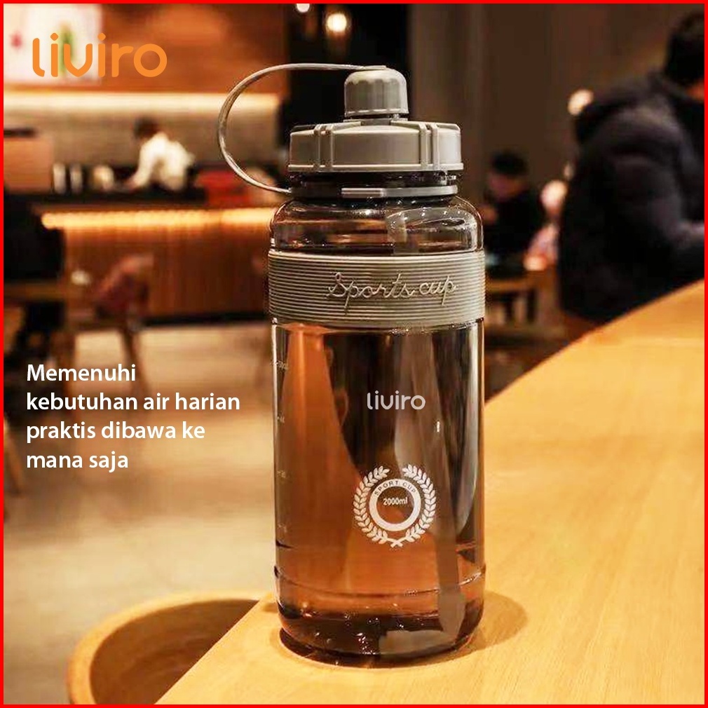 Liviro Botol Minum Champy Sport Cup 2 Liter Besar Dengan Strap Bahu Botol Air Jumbo Premium