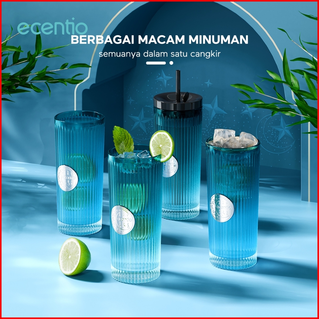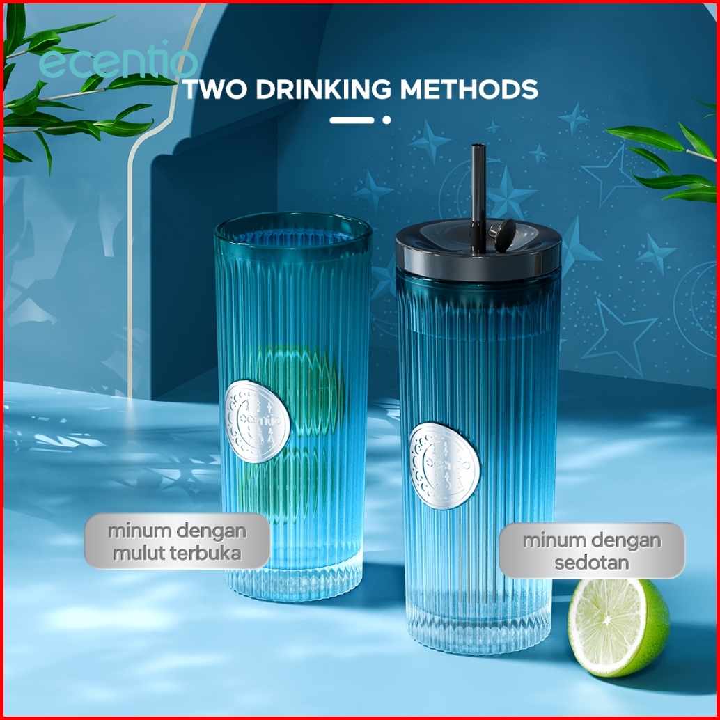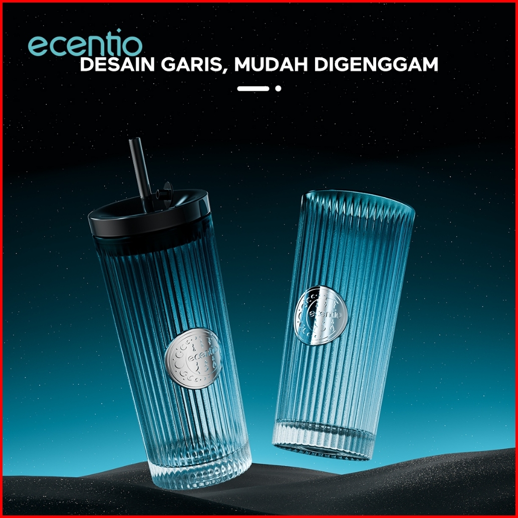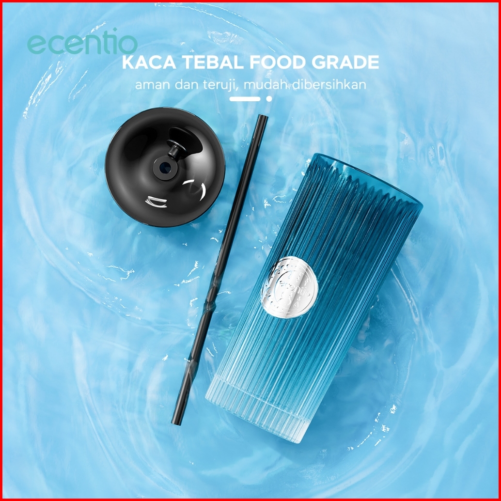 Ecentio Tumblr Gelas Aesthetic Cangkir Kaca Perak Seri 470ml Botol Minum Free Sedotan