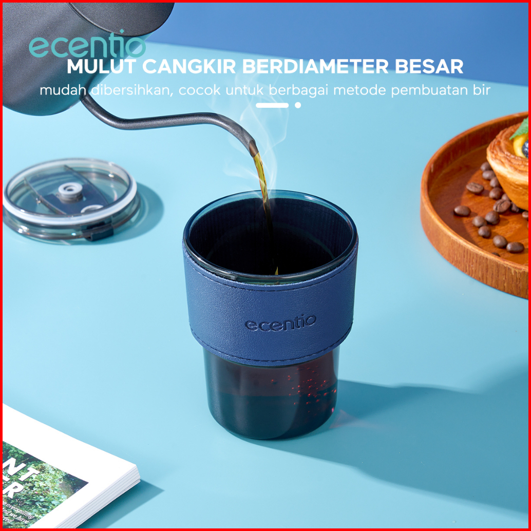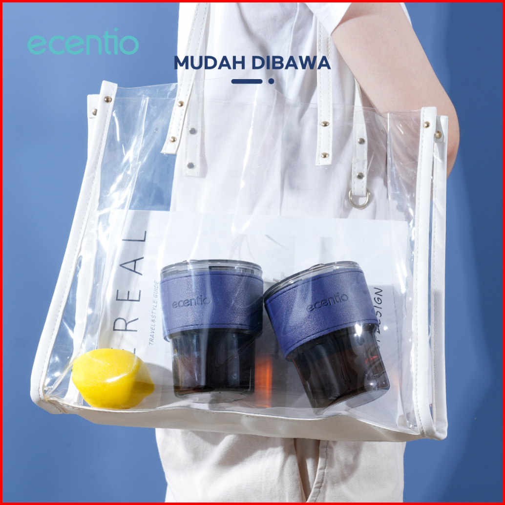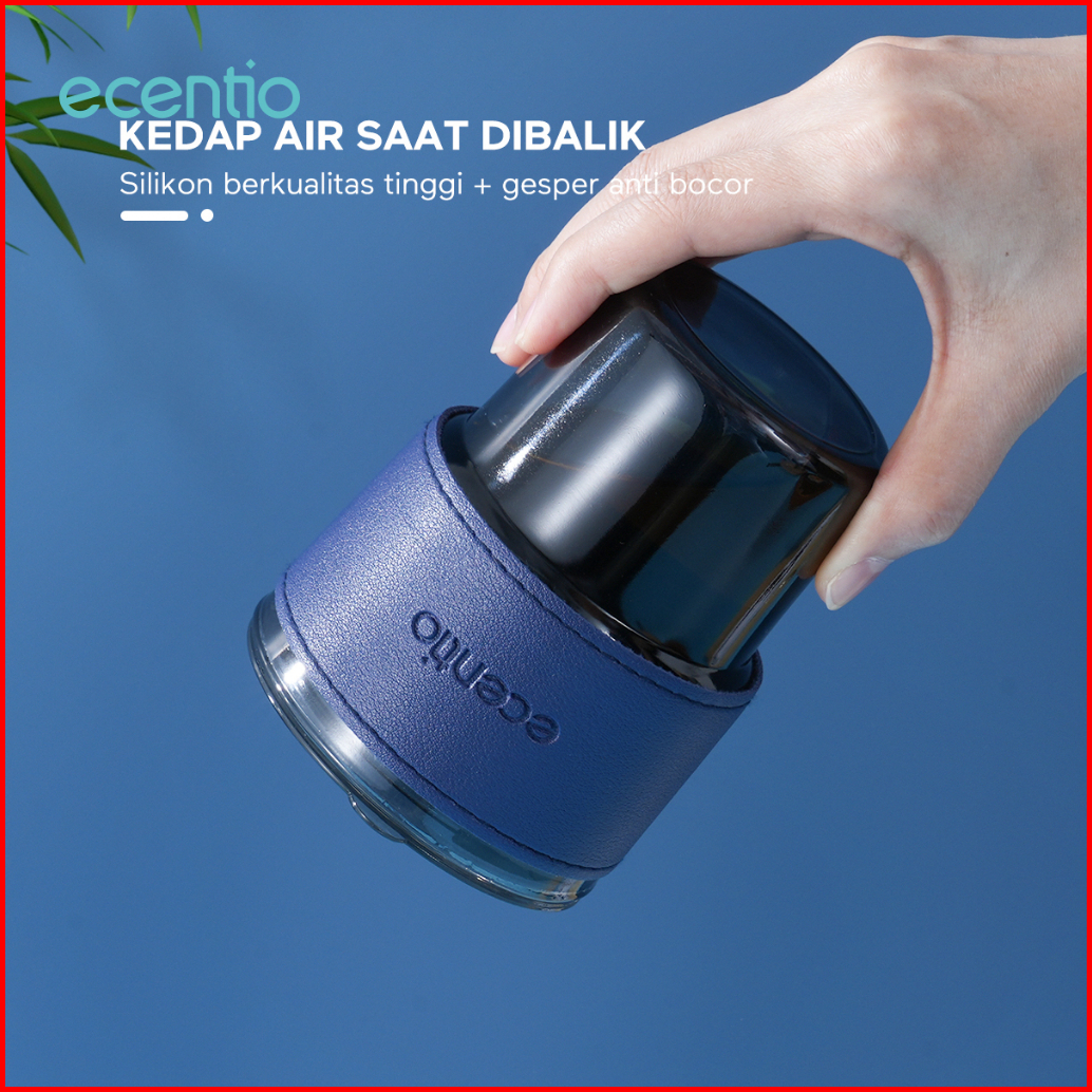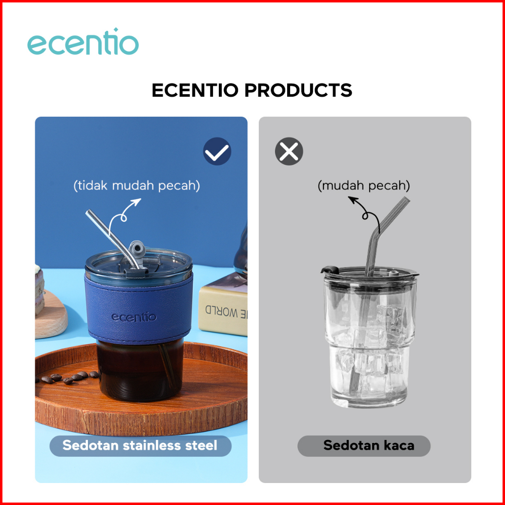 Ecentio Gelas Tumbler 400ml Cangkir Kopi Kaca Aesthetic Water Bottle Cup Dengan Sedotan Biru