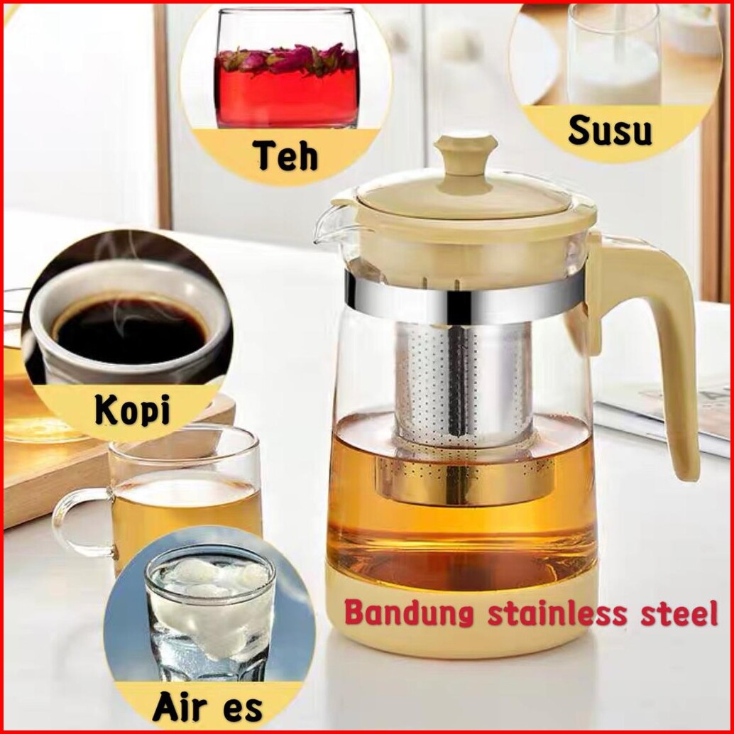 Teko Teh Kopi Dengan Saringan 900ml Kaca Tea Pot Glass Elegan Unik