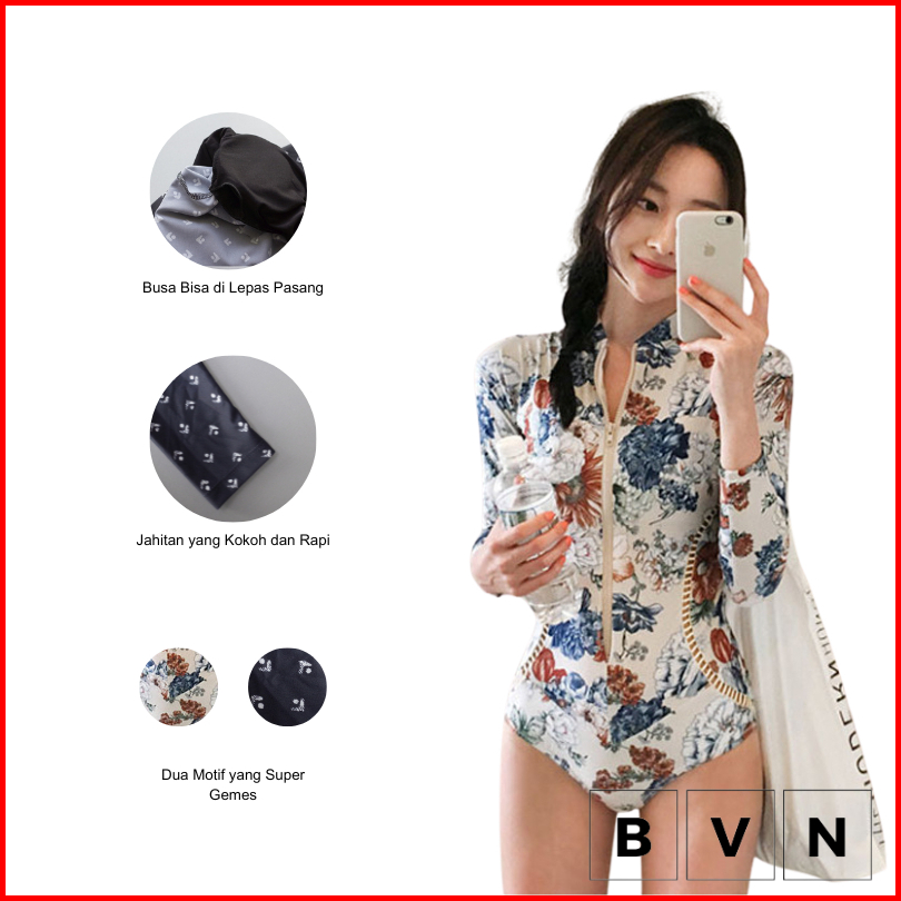 Bvn Baju Renang Wanita Rashguard Lengan Panjang Untuk Surfing 8028