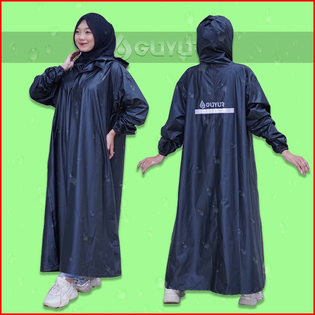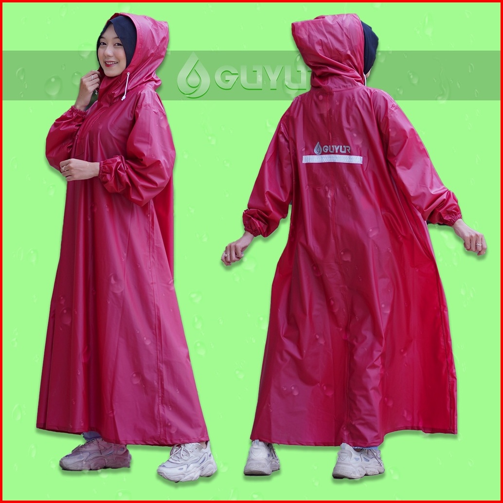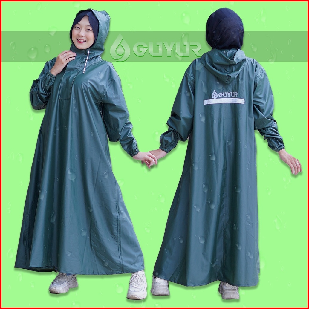 Jas Hujan Jumbo Big Raincoat Wanita Muslimah Hijab Model Gamis Terusan Rok Syar I Bahan Impor Waterproof Zipper