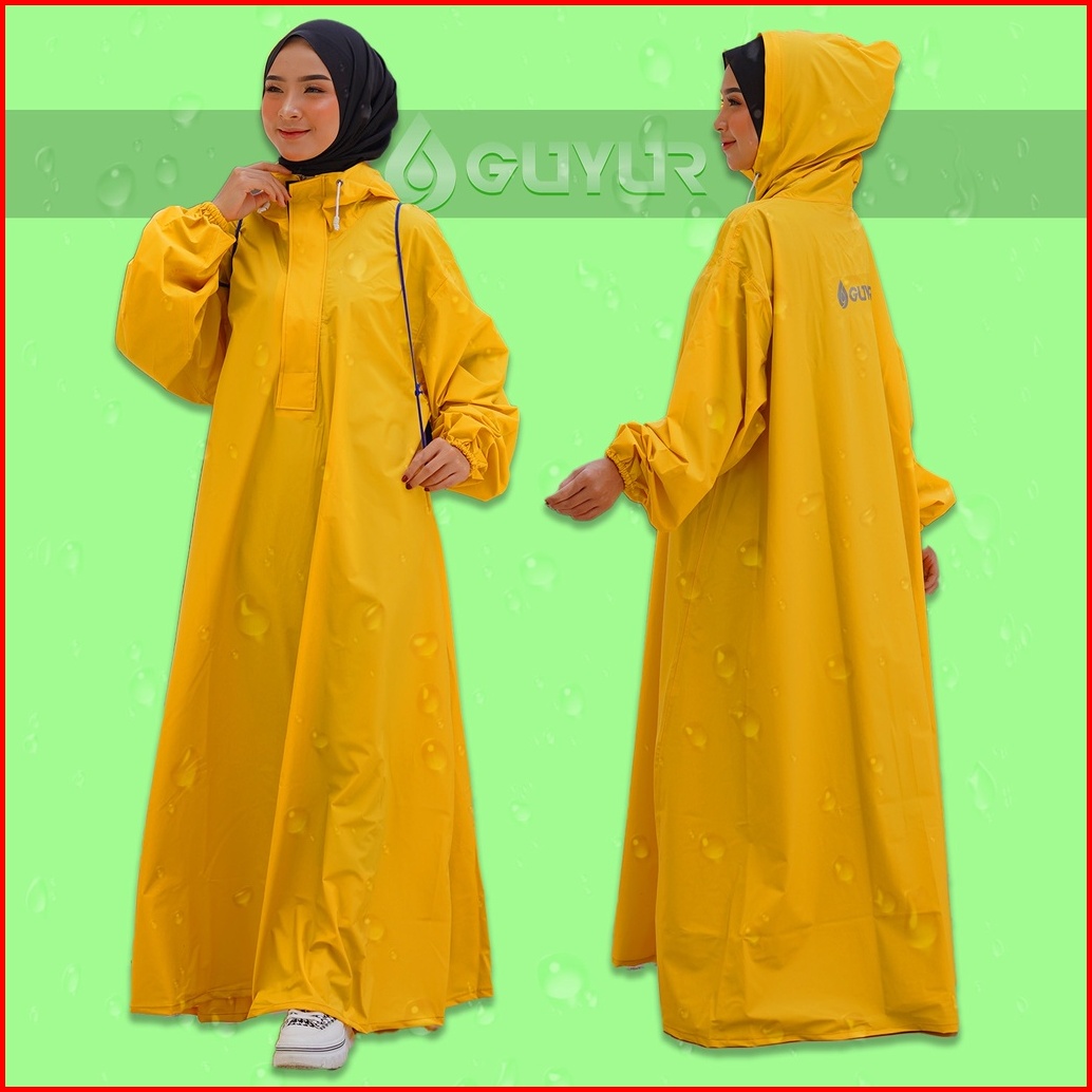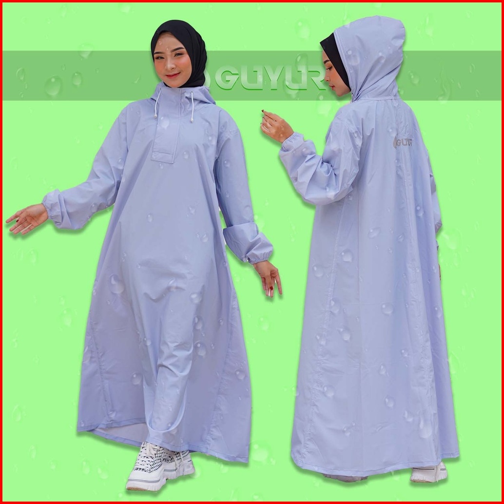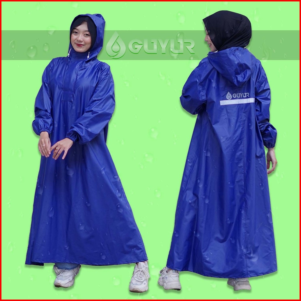 Jas Hujan Jumbo Big Raincoat Wanita Muslimah Hijab Model Gamis Terusan Rok Syar I Bahan Impor Waterproof Zipper