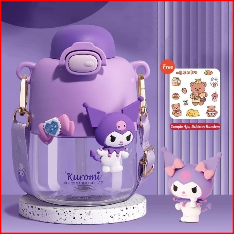 Botol Minum Sanrio Free Stiker Lucu Tempat Minum Motif Cinnnamoroll Kuromi Melody Jumbo Tali -2309