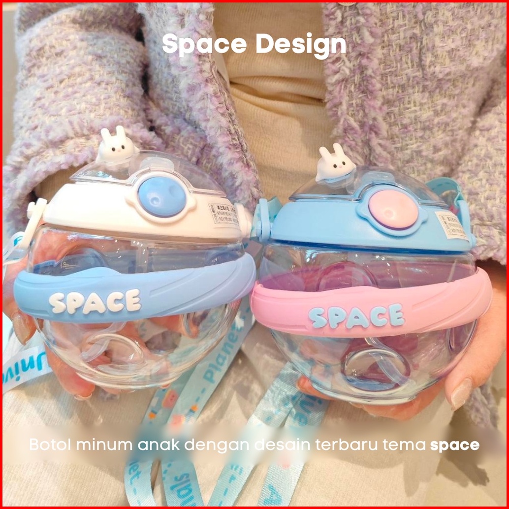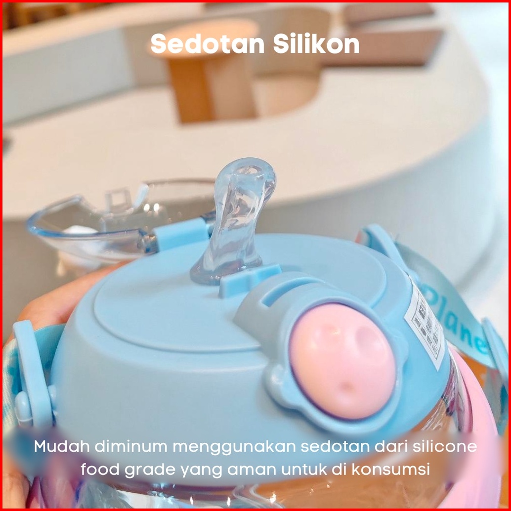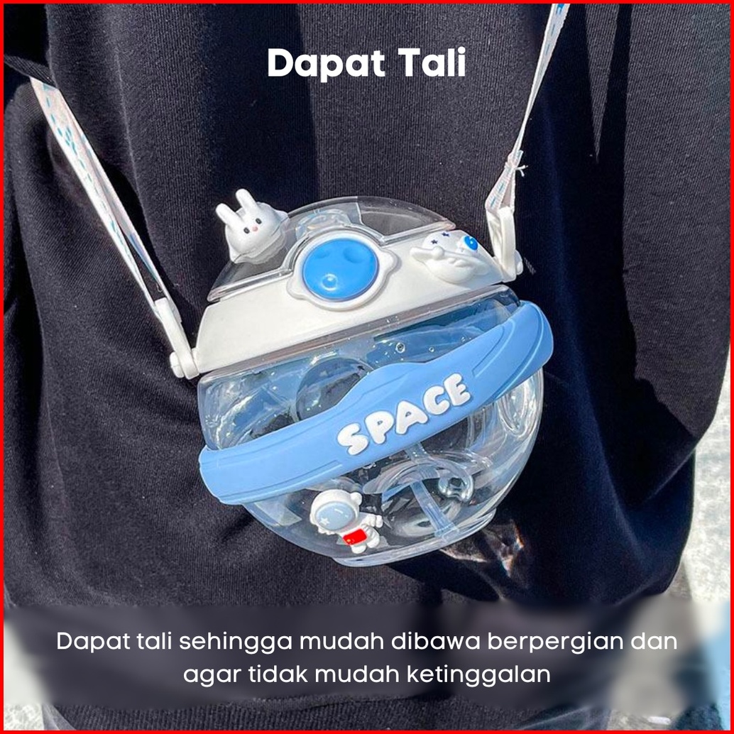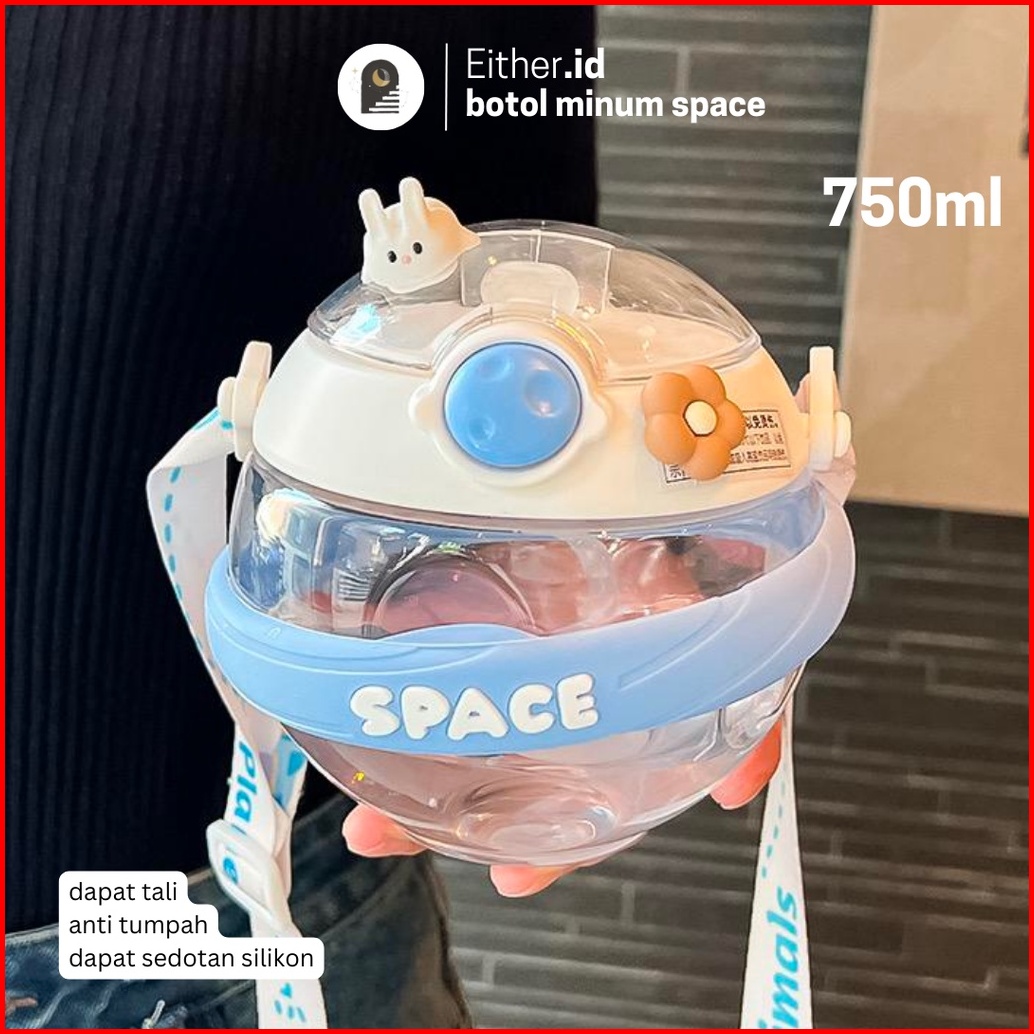 Either.id - Botol Minum Anak Lucu Bentuk Planet Anti Tumpah Uk 750ml Tali Panjang Free Stiker 2d 3d Bpa Free