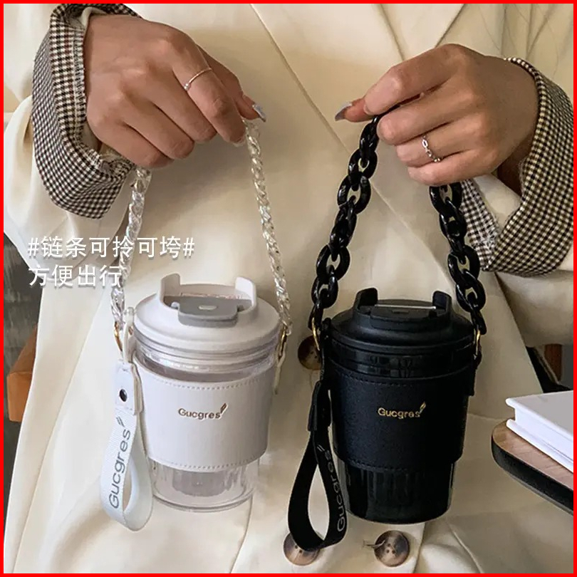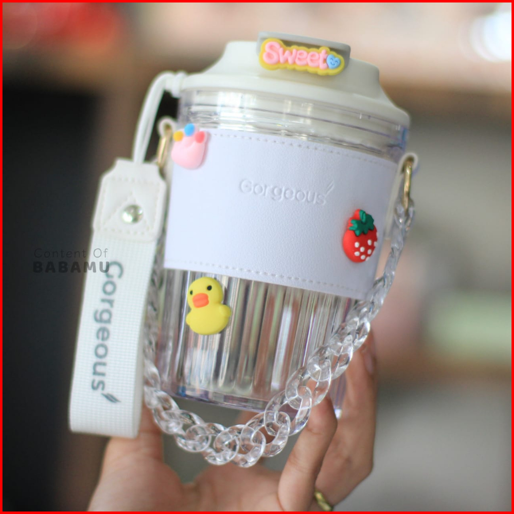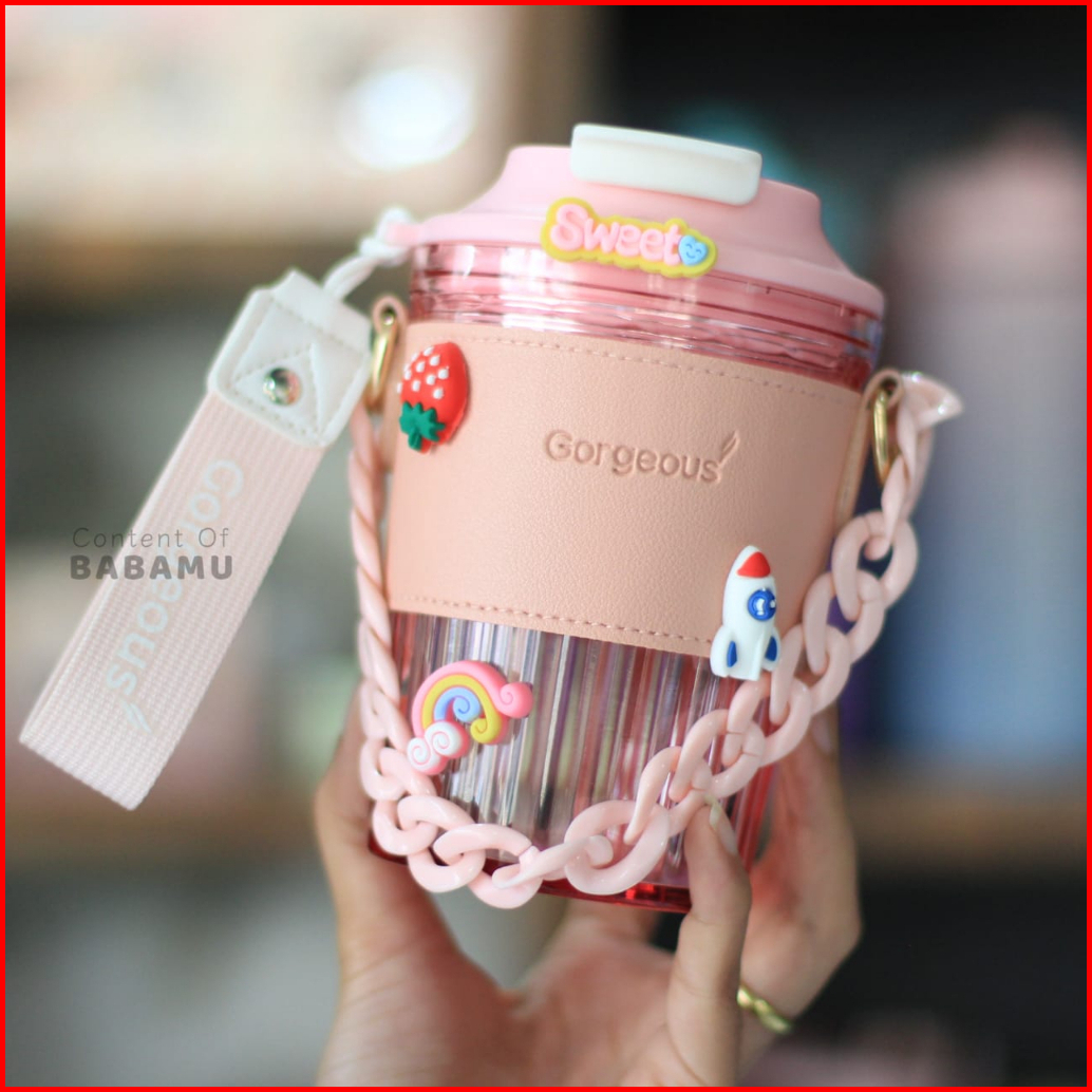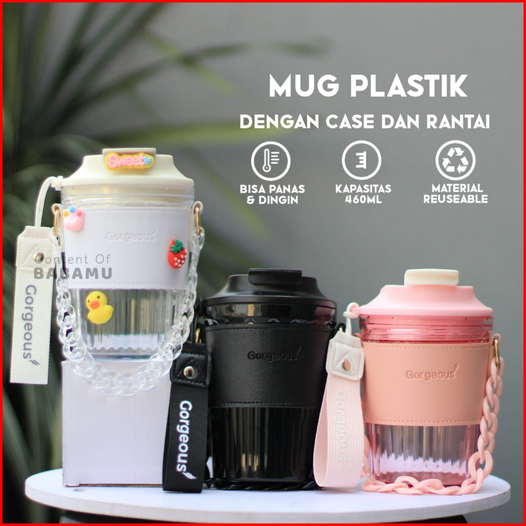 Gelas Minum Mug Plastik Dengan Case Dan Strap Rantai - Bm350