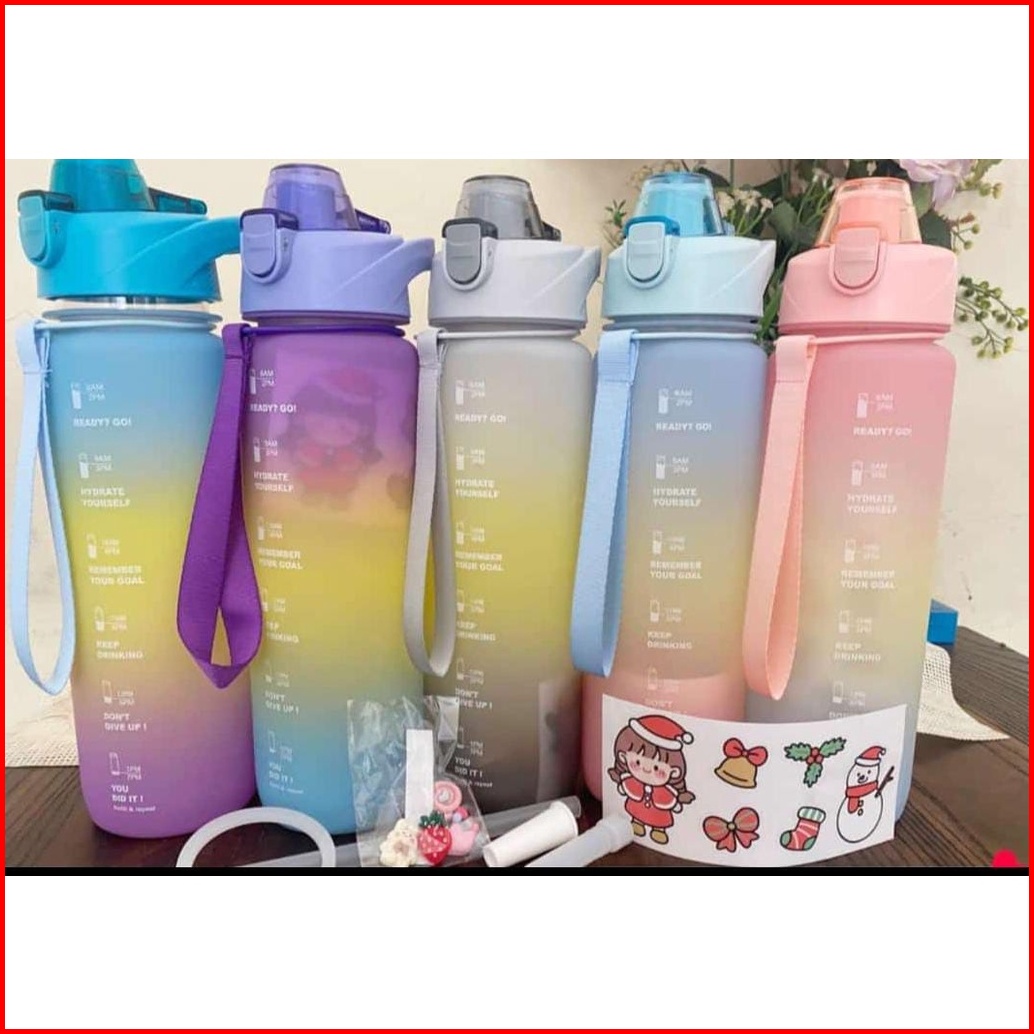 Botol Air Minum Motivasi Penanda Waktu Tutup Flip - Tumbler Tritan Bpa Free