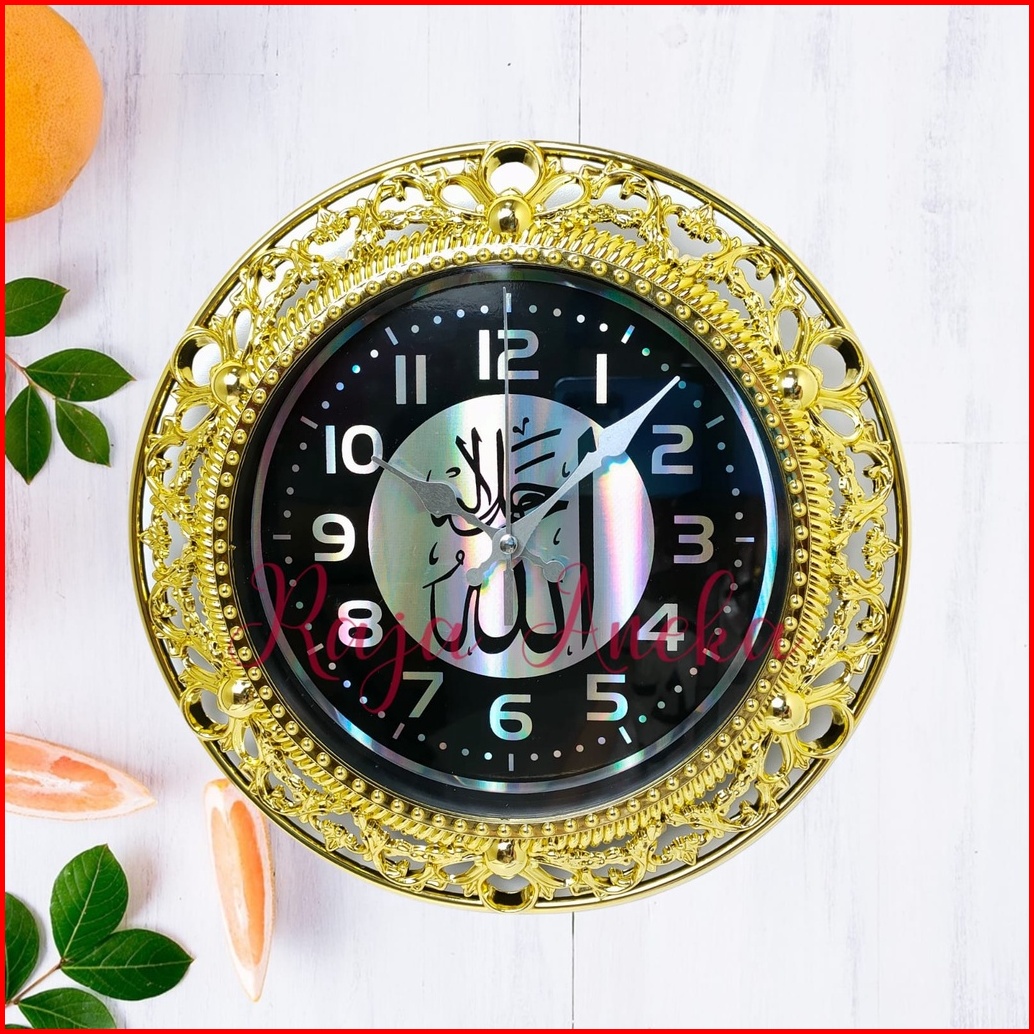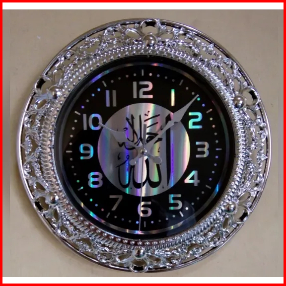 Barang Import Jam Dinding Kaligrafi Arab Type 8693 Nk-8693 Diameter 21 Cm Termurah Dan Elegant Dekoratif Silver Kilap