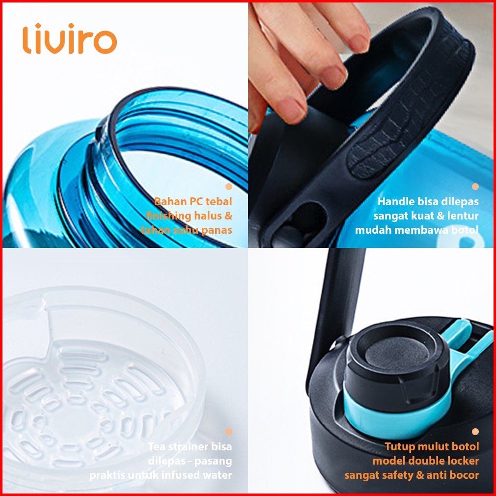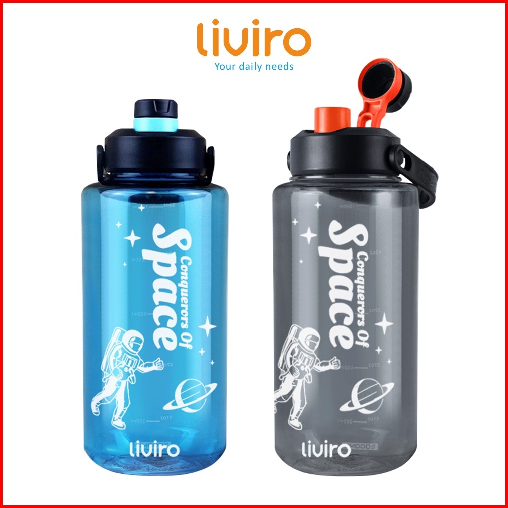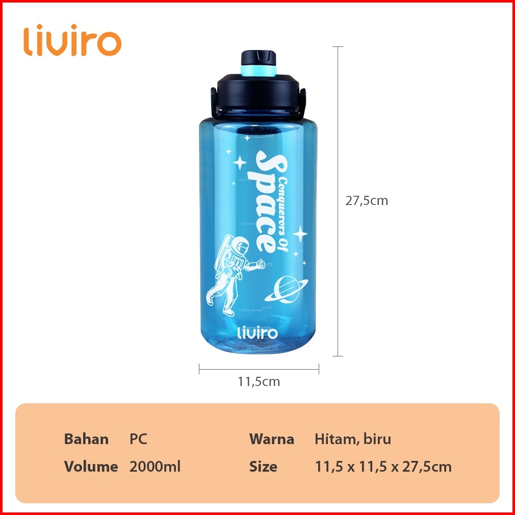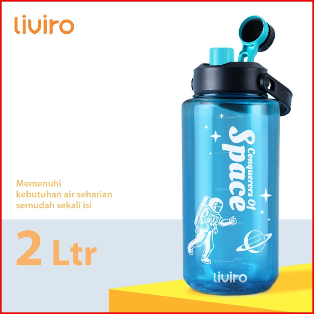 Liviro Botol Minum Space Cup Besar 2 Liter Double Silicone Seal Anti Bocor Dengan Handle Praktis