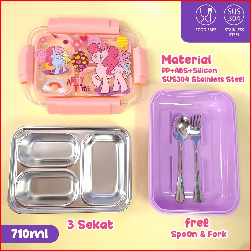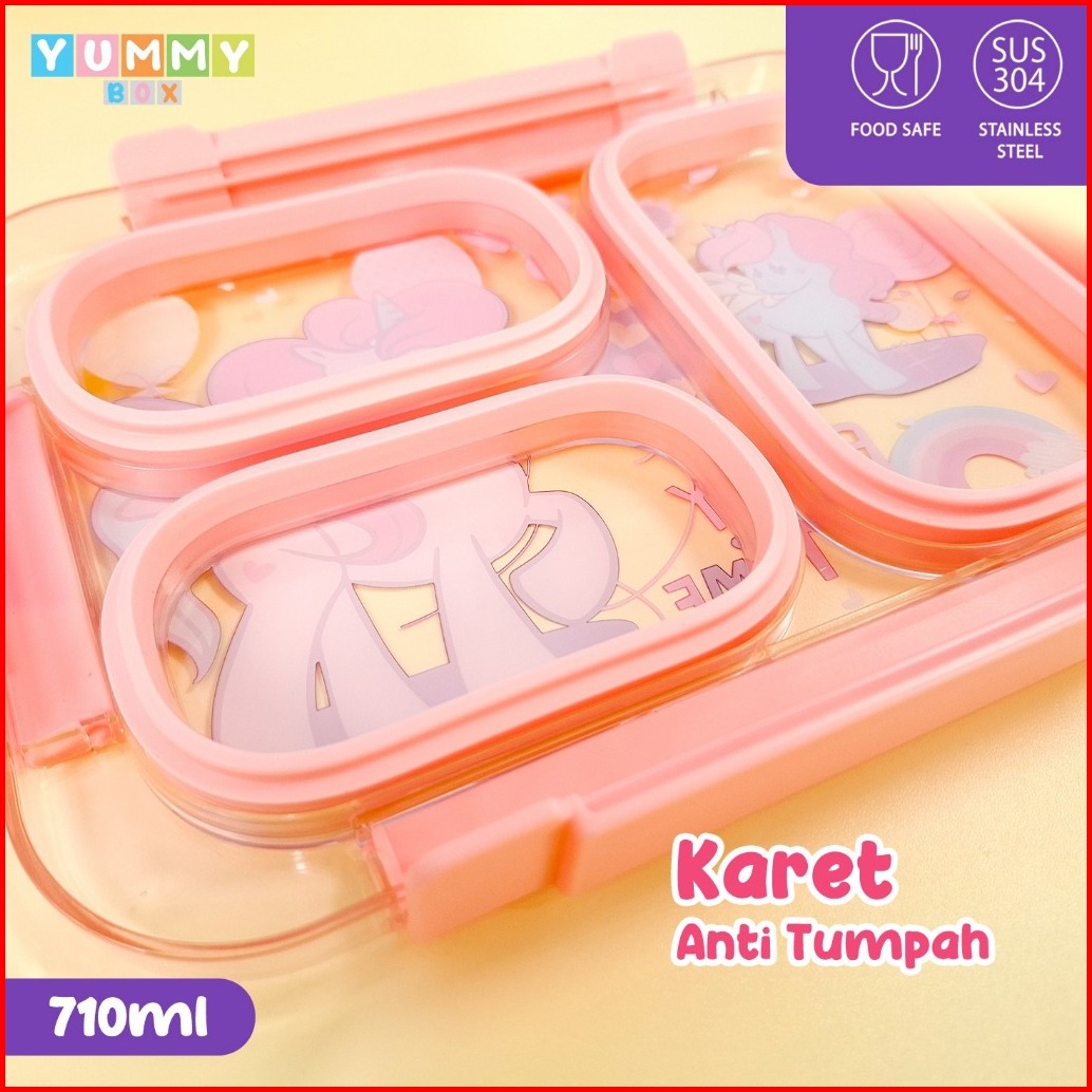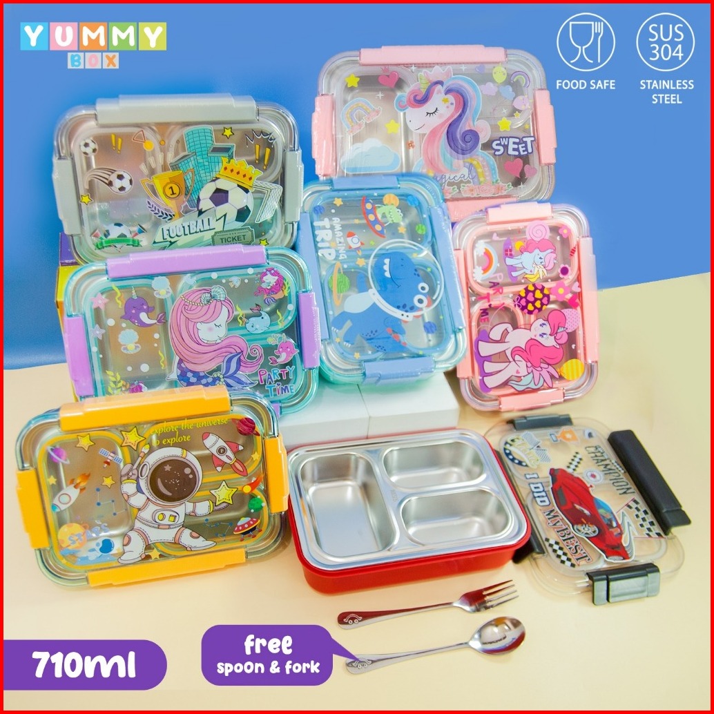 Yummy Box Bento Stainless Bento Sekat 3 710ml Free Sendok Garpu Ym7559