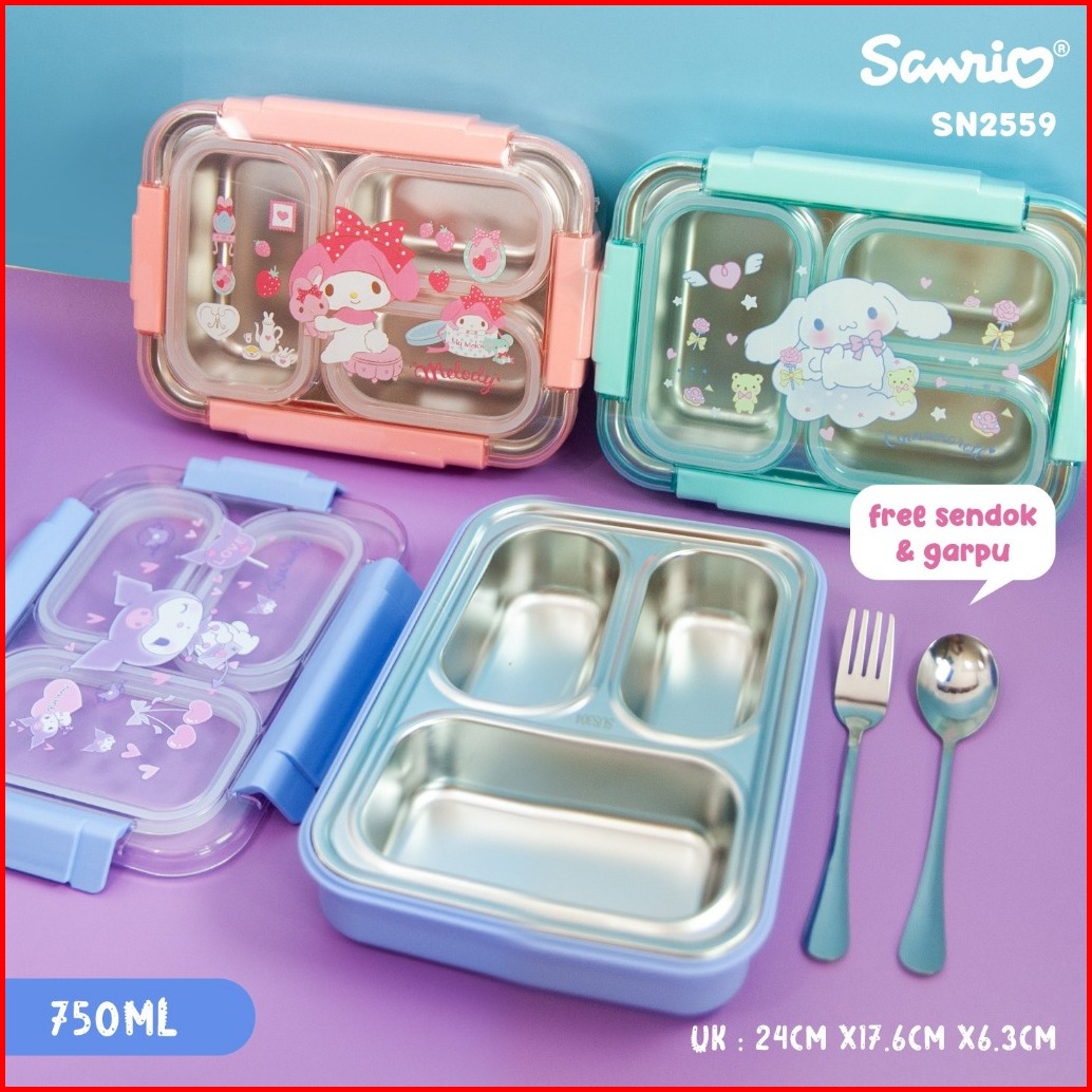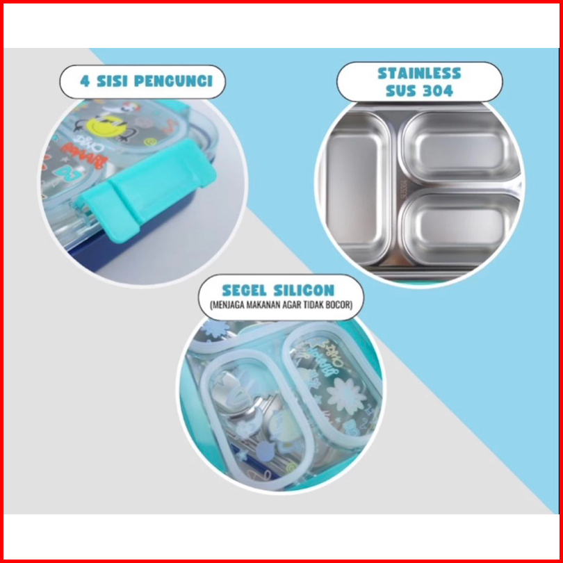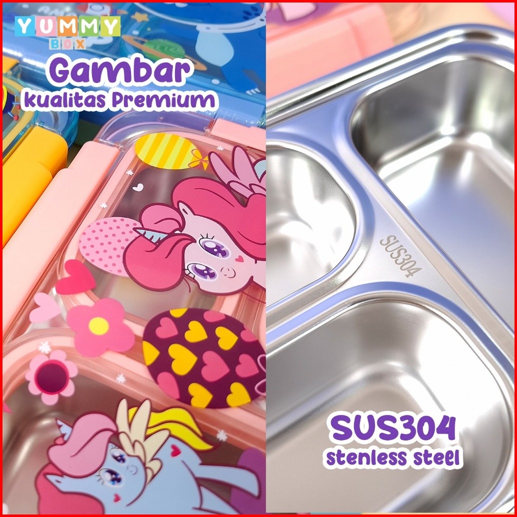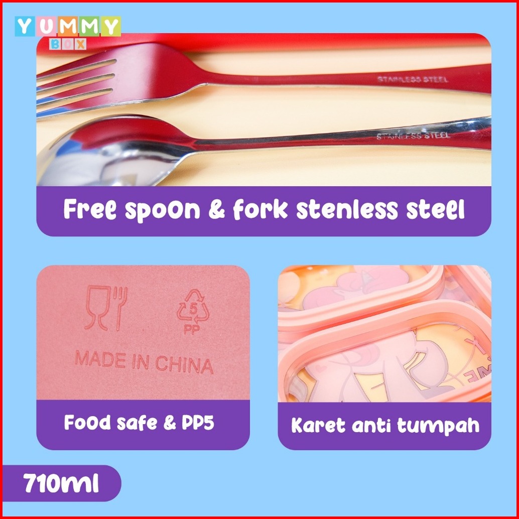 Yummy Box Bento Stainless Bento Sekat 3 710ml Free Sendok Garpu Ym7559