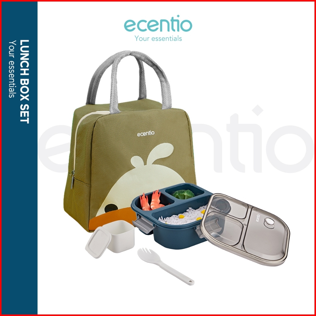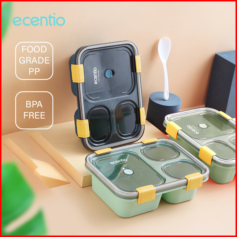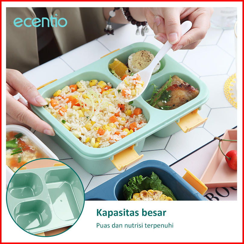 Ecentio Lunch Box Set Anti Bocor Kotak Tempat Makan 1100ml 3grid Kotak Sup 100ml Free Sendok Bpa Free