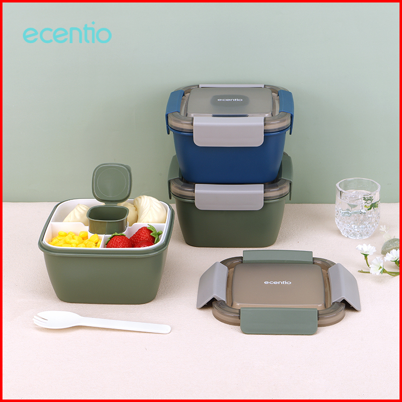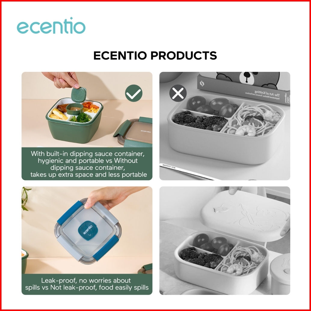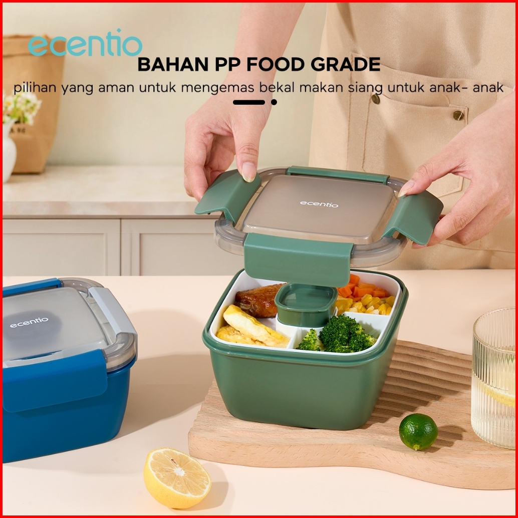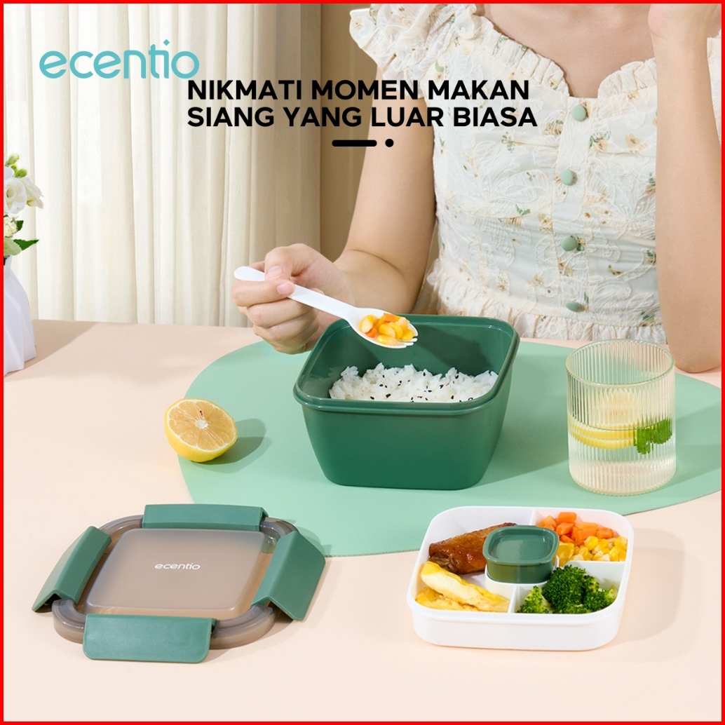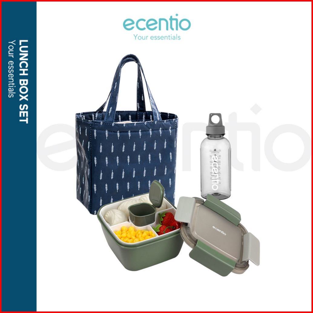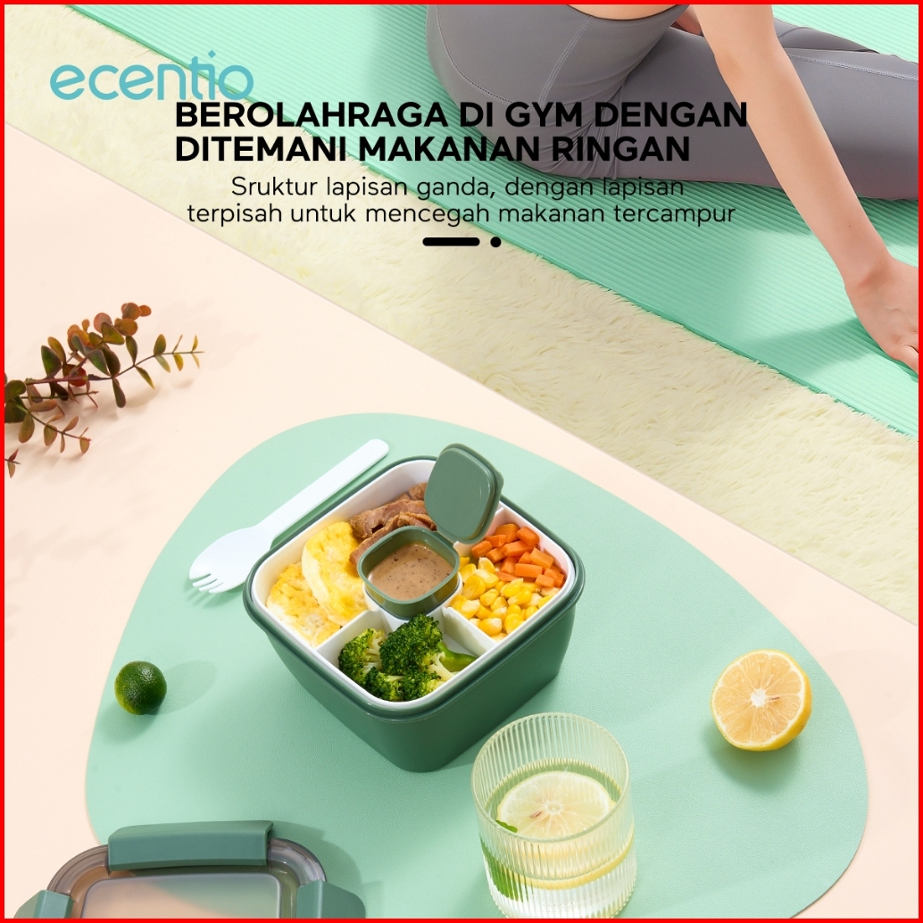 Ecentio Lunch Box Anti Tumpah Botol Minum Set Free Sendok Kotak Bekal Anti Tumpah