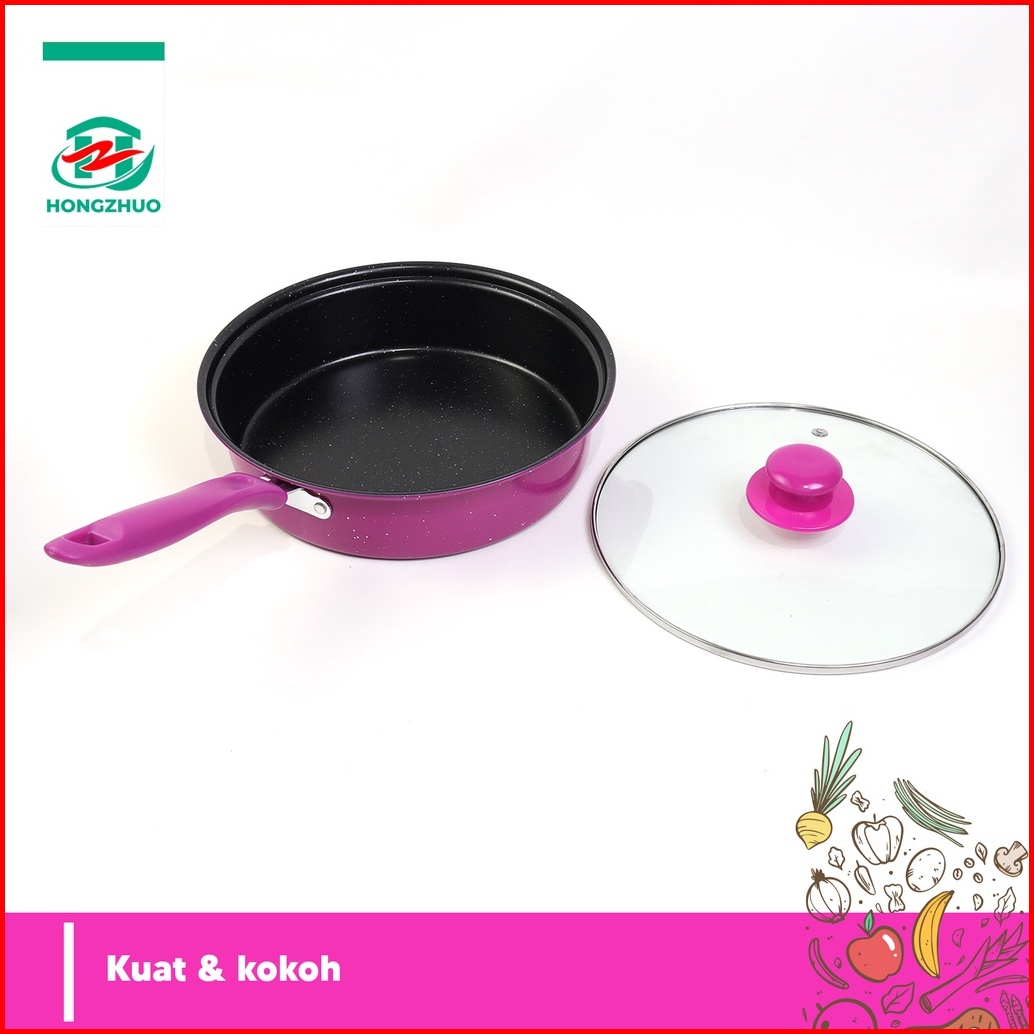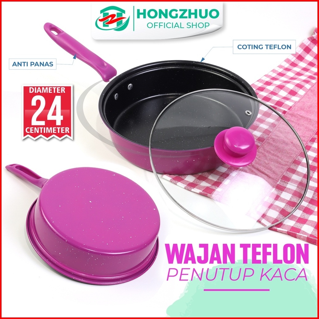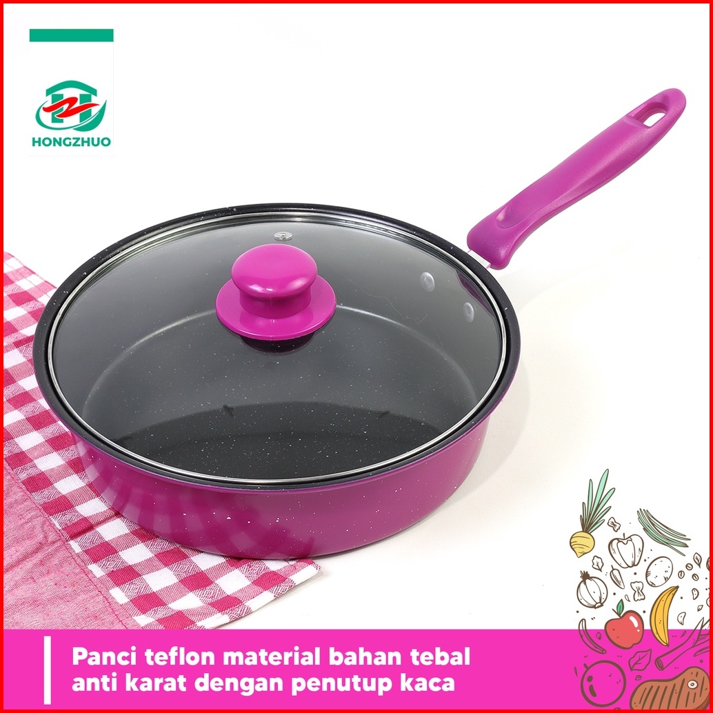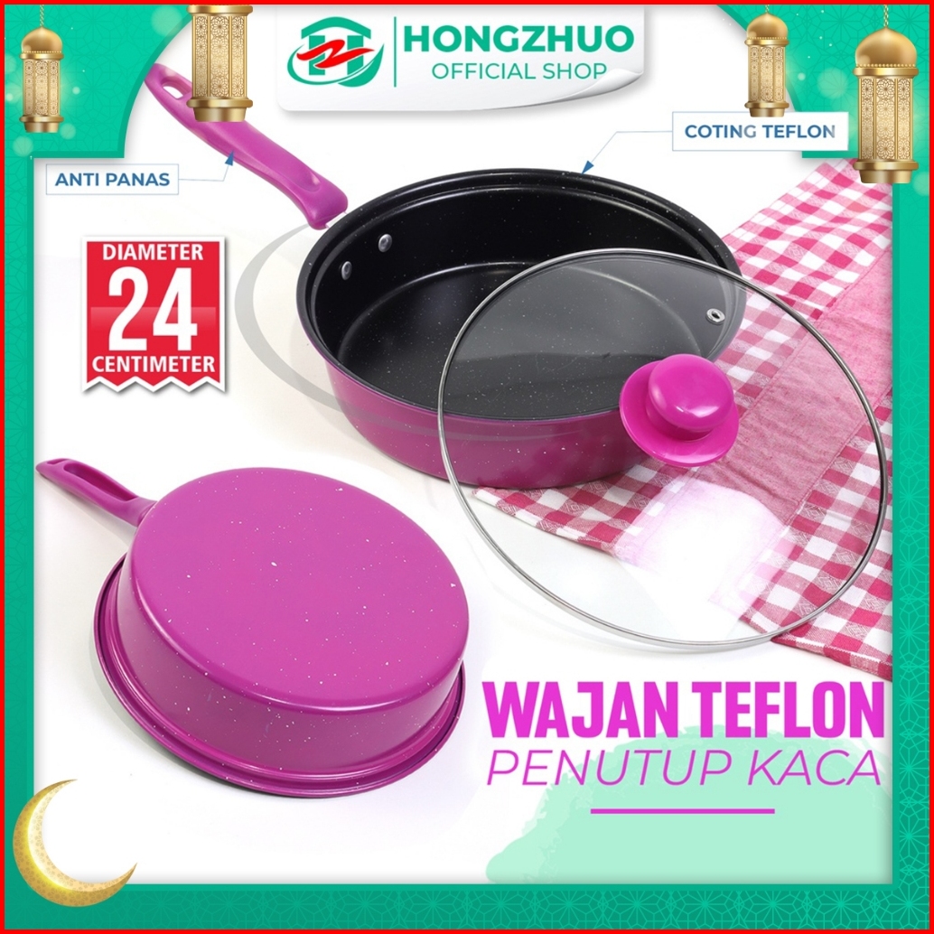 Hongzhuo Wajan Telfon Anti Lengket Dengan Tutup Kaca