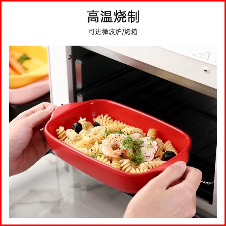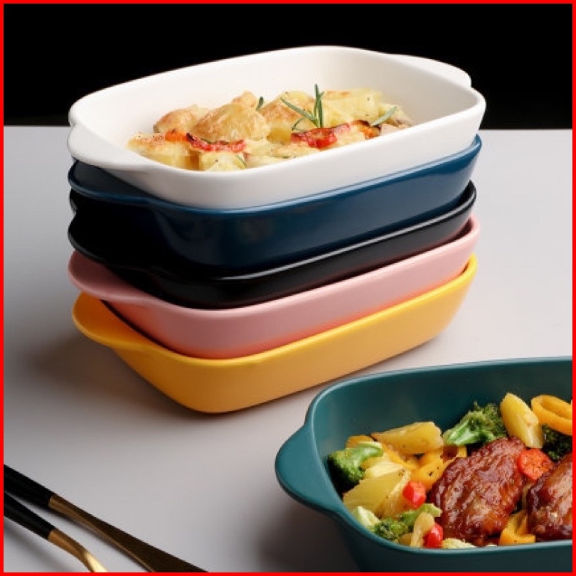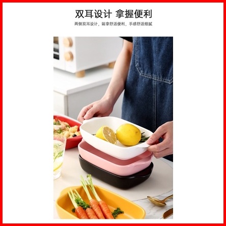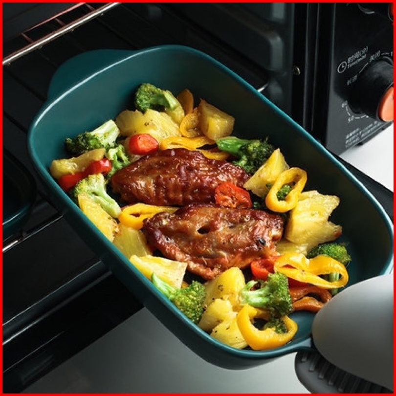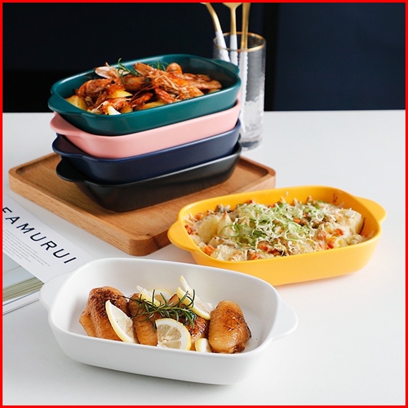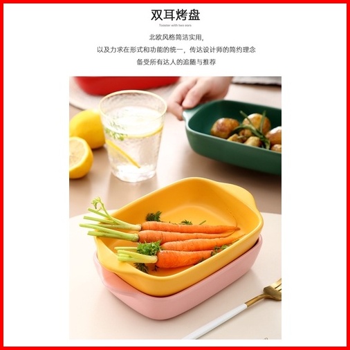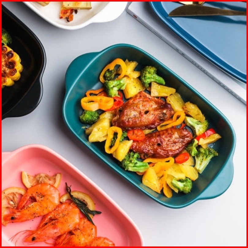 Piring Saji Porselen Keramik Cantik Dengan Gagang Tahan Panas Ceramic Baking Tray Oven Microwave Nordic Style