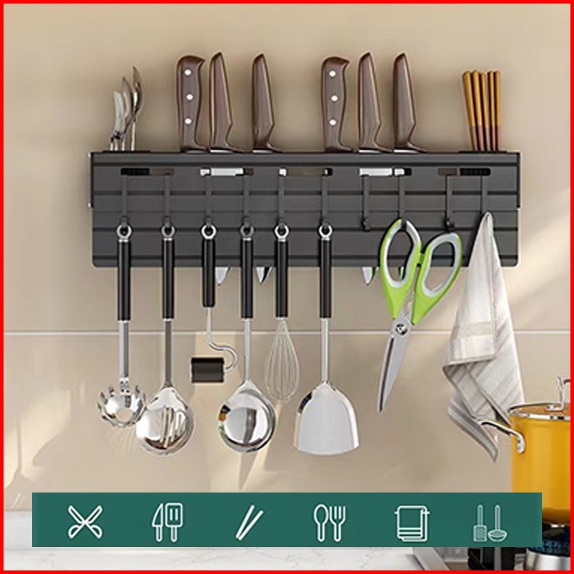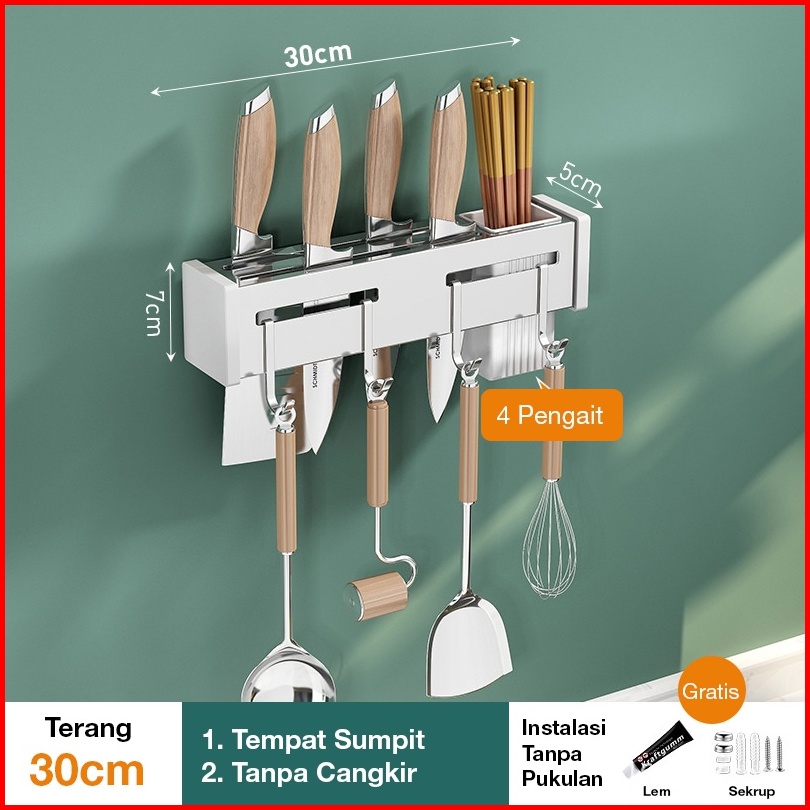 Earise Rak Pisau Dinding Dapur Stainless Steel Rak Gantung Dapur Multifungsi Rak Tempel Tanpa Bor