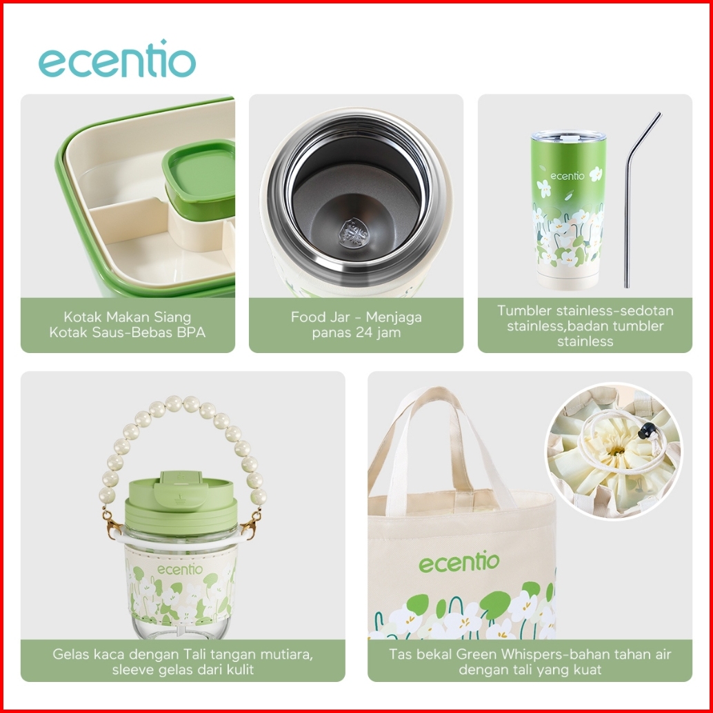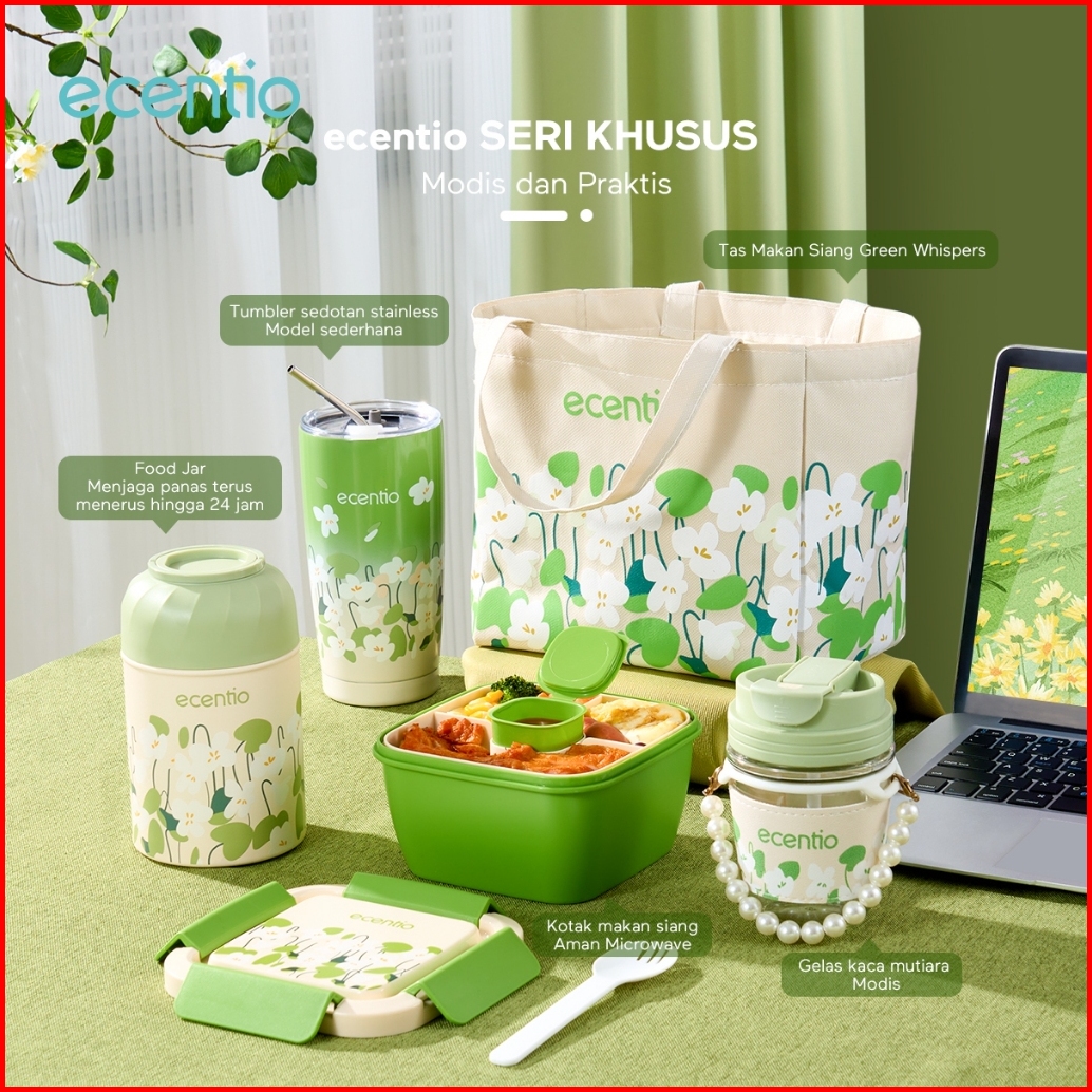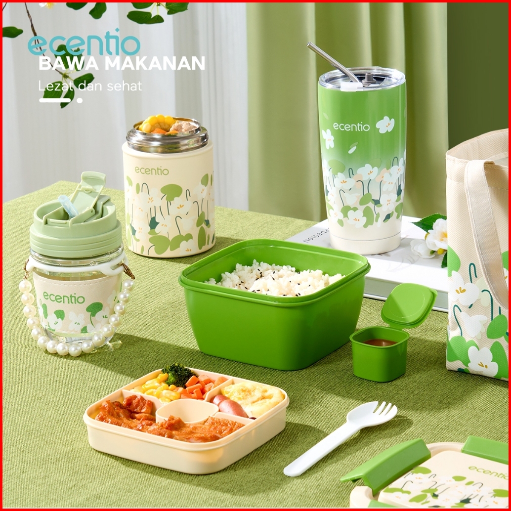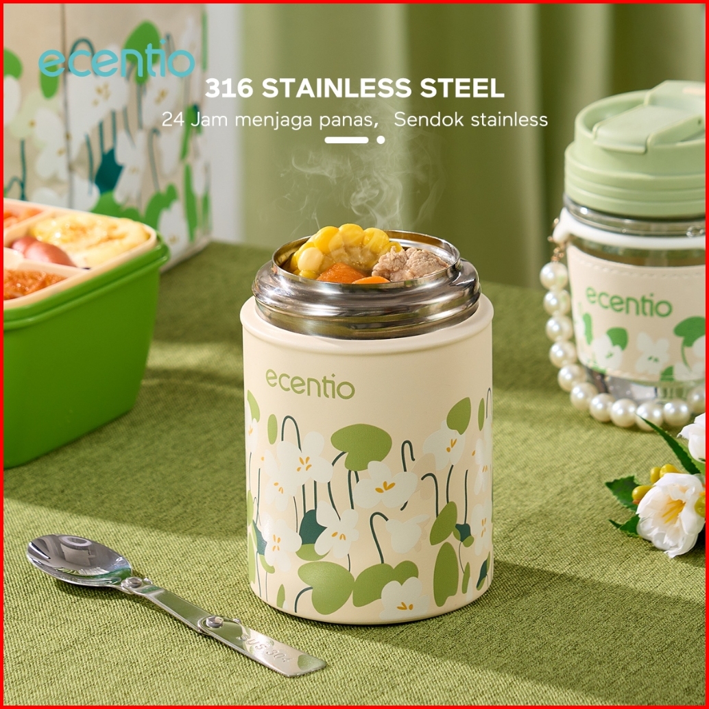 Ecentio Tempat Makan Tas Bekal Food Jar Termos Nasi Tumbler Gelas Stainless
