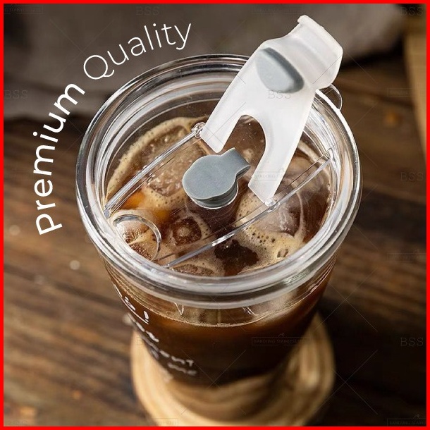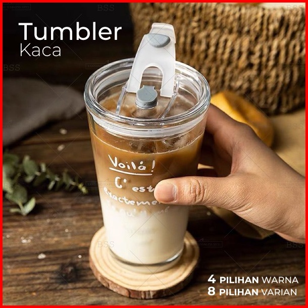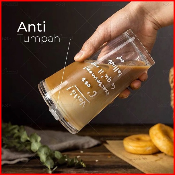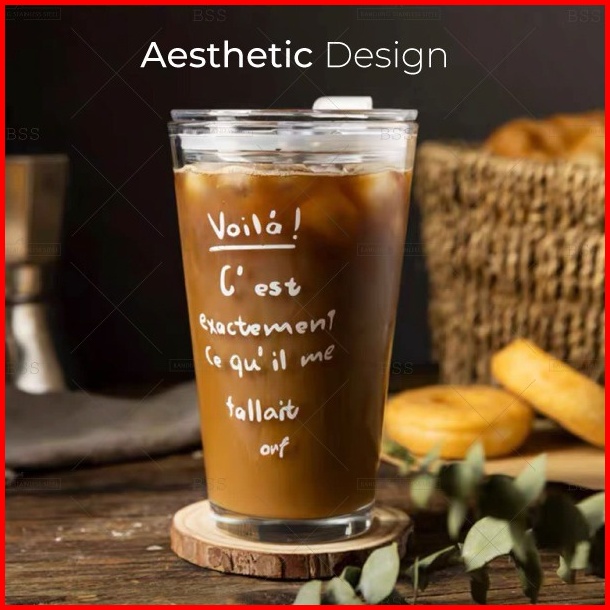 Tumbler Kaca Aesthetic 450ml Gelas Minum Kopi Anti Panas Dengan Sedotan Kaca Simple Elegan Glass Cup