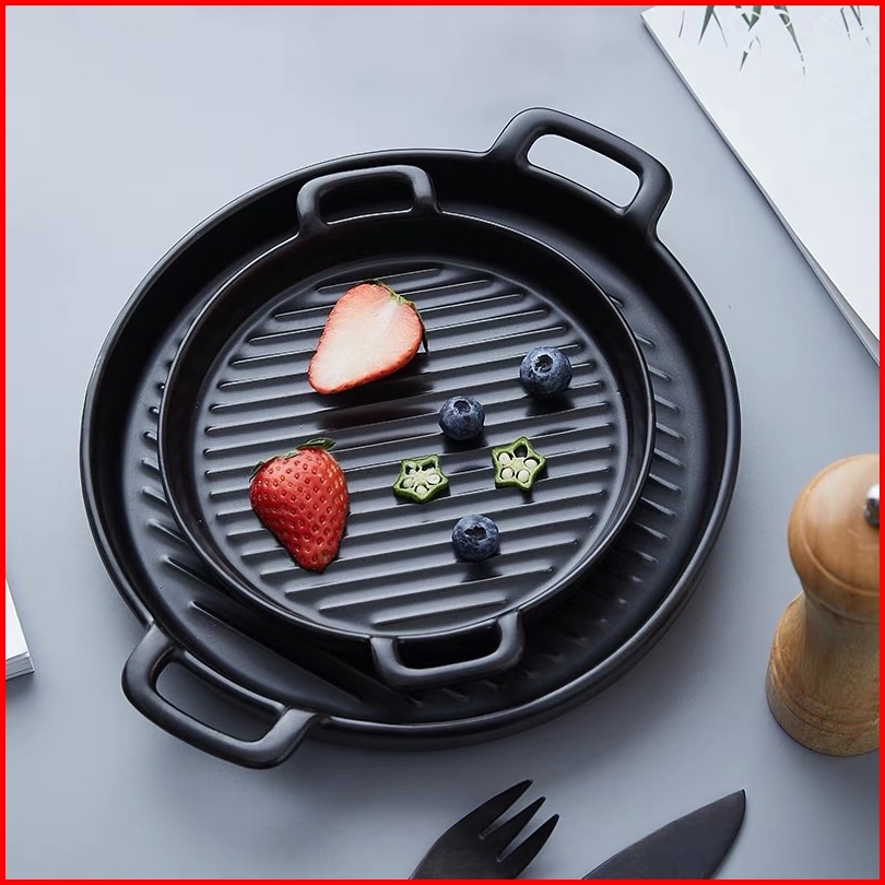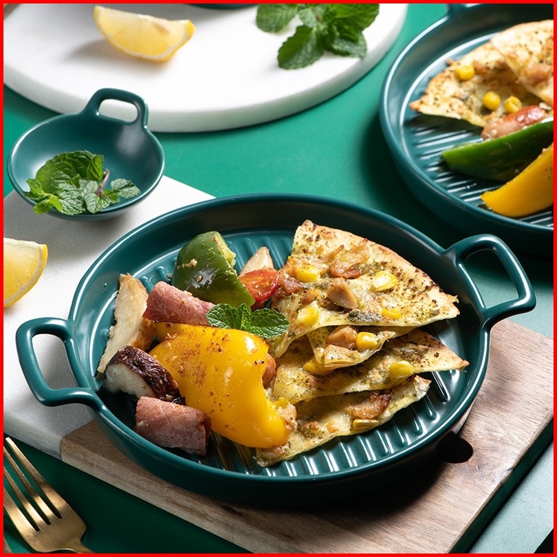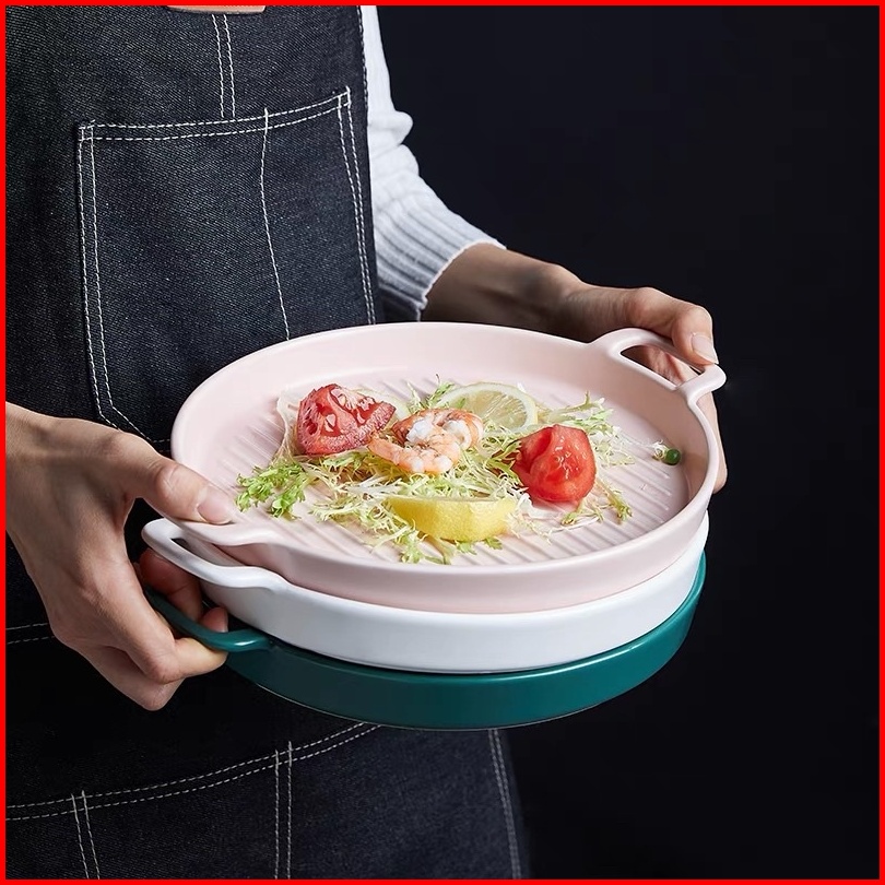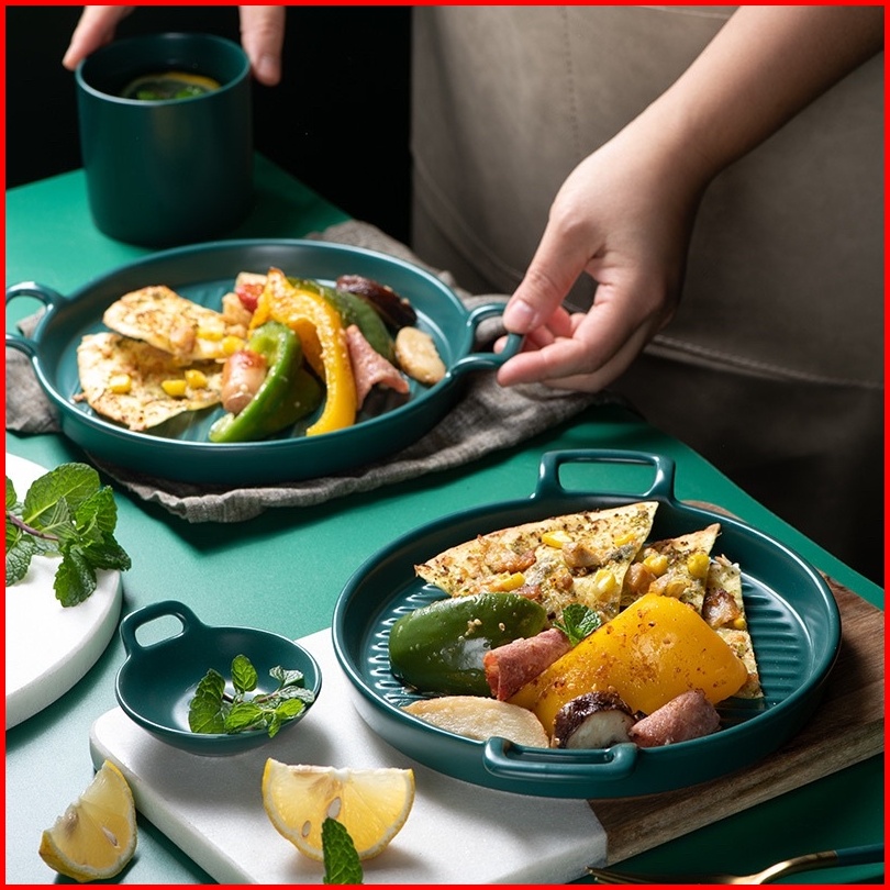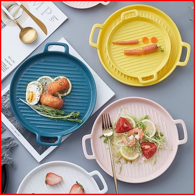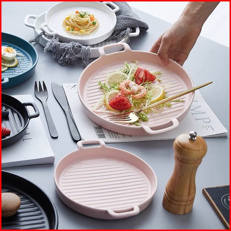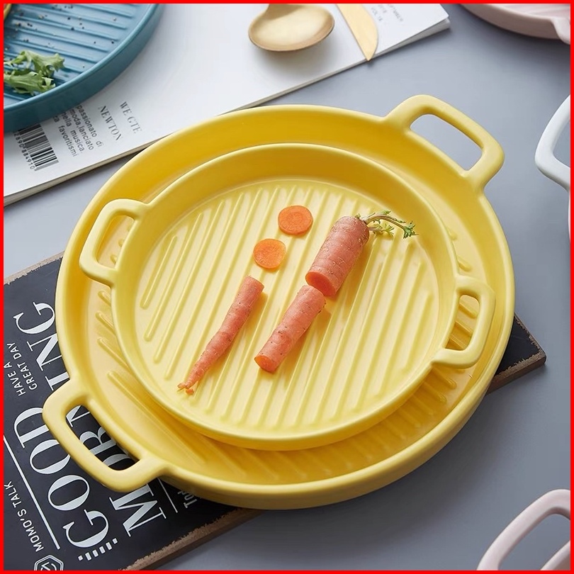 Ceramic Plate Handle Piring Keramik Nordic Style Dengan Gagang Baking Ceramic Tray Steak Ceramic Tray Piring Saji Tahan