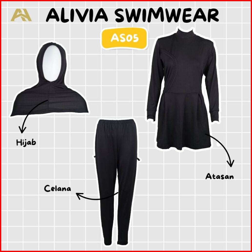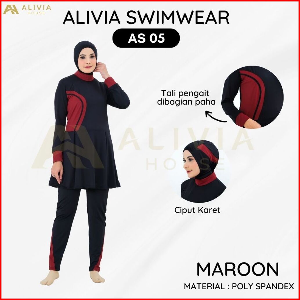Alivia House - Alivia Swimwear As05 - Baju Renang Muslimah Syari Dewasa Wanita Muslim Perempuan Remaja Swimwear Hijab