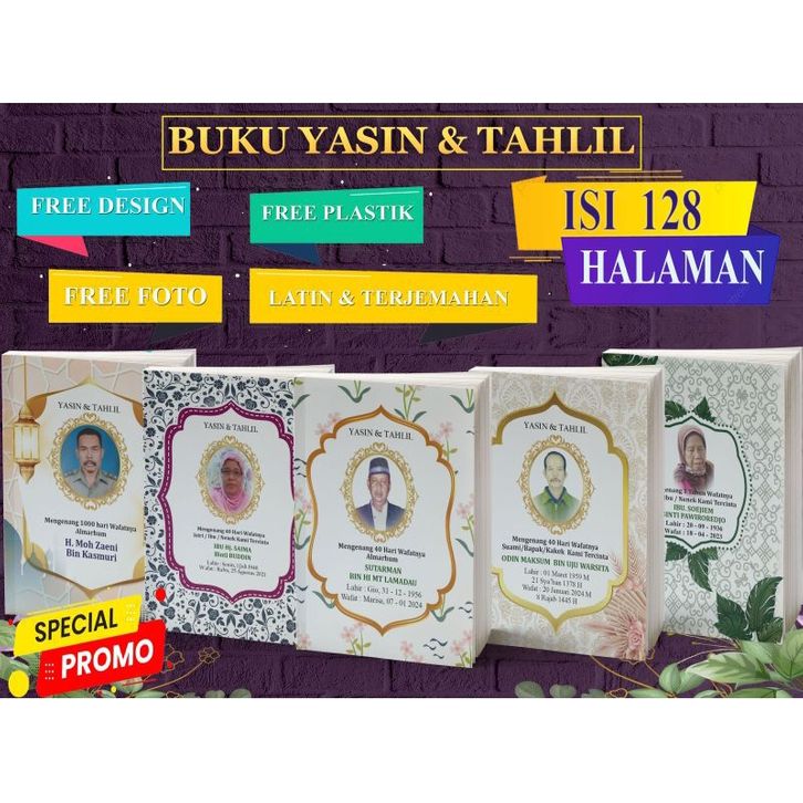 30 PCS Cetak buku yasin & tahlil custom free foto 128 halaman yasin 40 hari & 100 harian latin & terjemahan