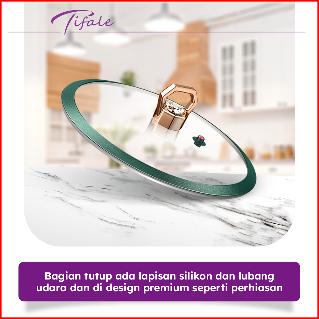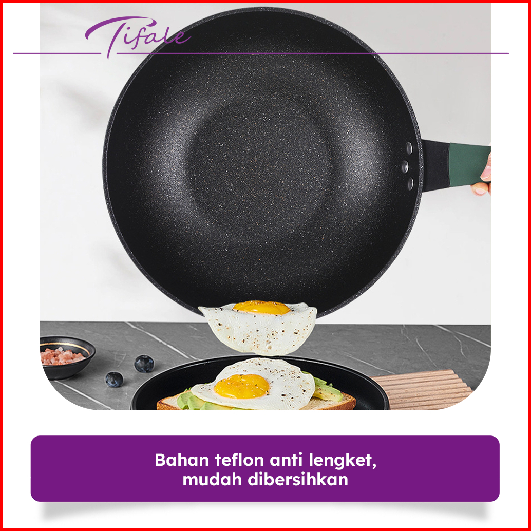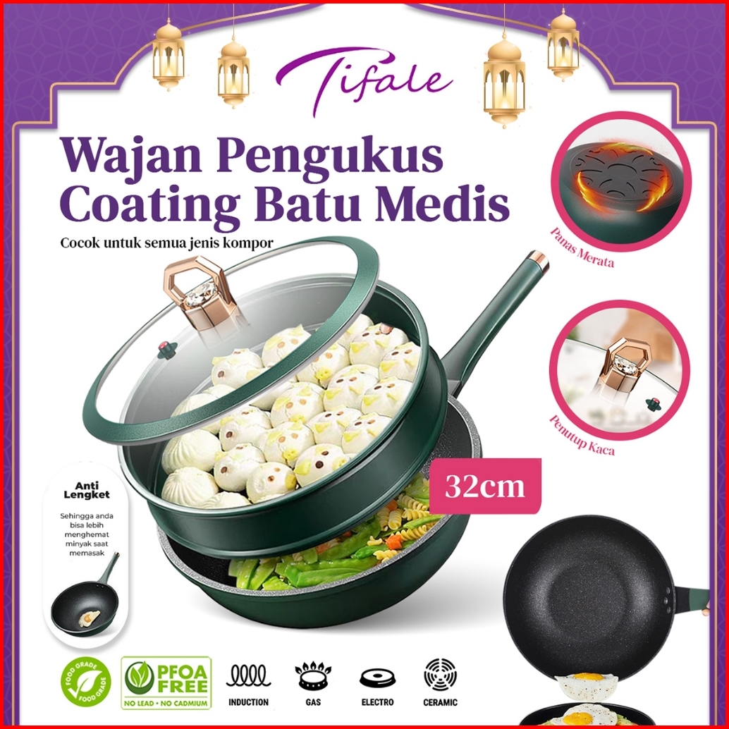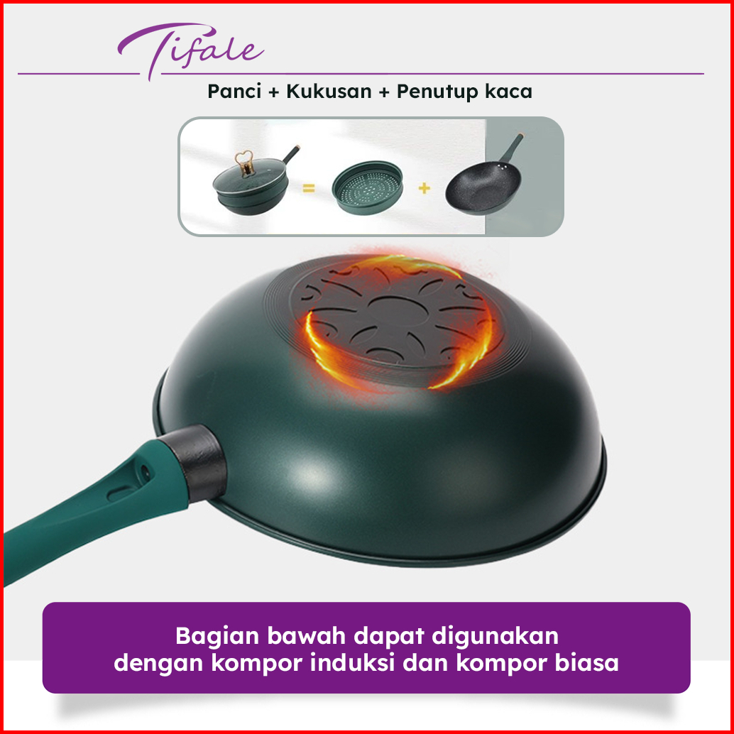 Tifale 3in1 Wajan Wokpan Steamer 32 Cm Bahan Batu Medis Anti Lengket Hijau Premium Panci Penggorengan Kukus Serba Guna 3