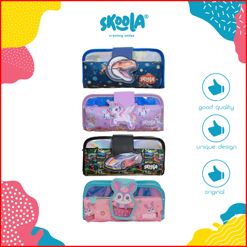 Skoola Tempat Pensil Lipat 3 Pencil Case Unisex Lucu Karakter Unicorn Cupcake Cars Cosmodino - Keisu