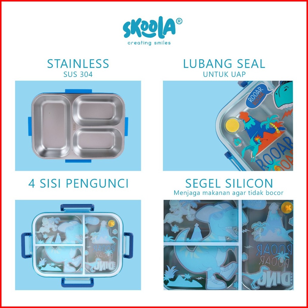 Skoola Kotak Bekal Lunch Box Tempat Makan Stainless Steel Anak Perempuan Laki - Laki Lucu - Taberu