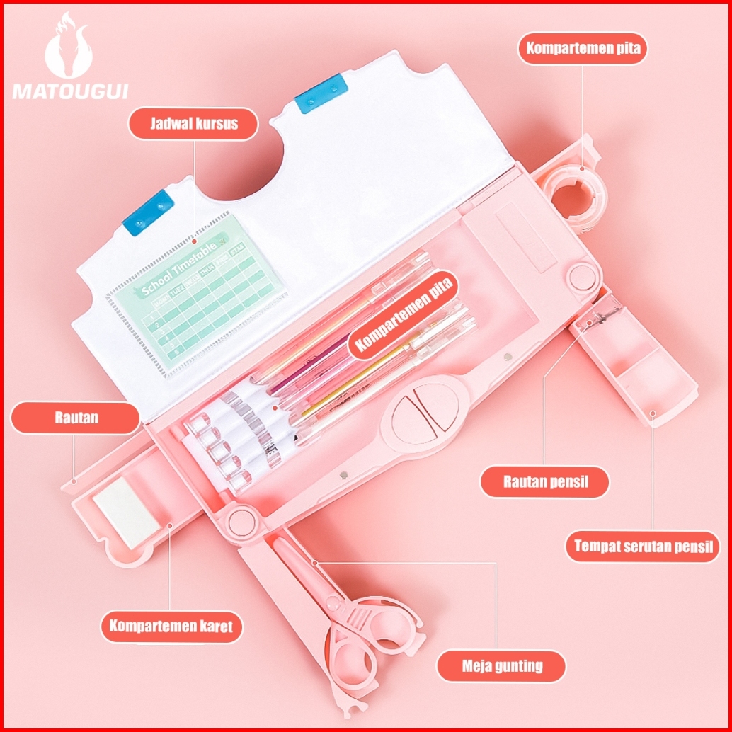 Matougui Kotak Pensil Multifungsi Lengkap Peruncing Gunting Isolasi Penghapus Penggaris