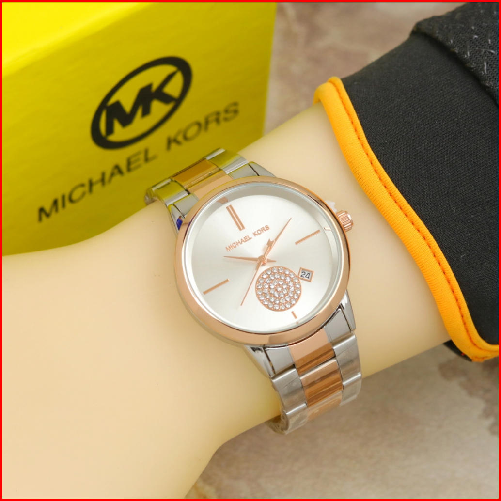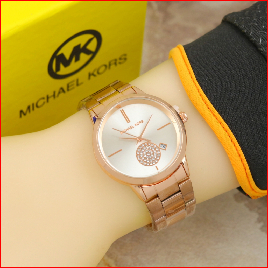 Jam Tangan Wanita Mk 3640 Mk3640 Portia Rantai Tali Stainless Tanggal Aktif Include Box Ori Kartu Garansi Baterai Cadang