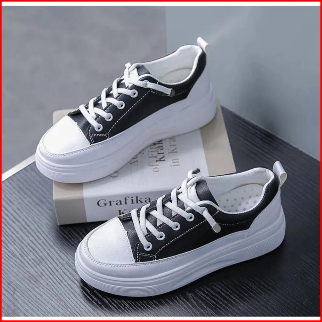 Sepatu Sekolah Wanita Hitam Putih Korean Style Hits Terbaru 2023 Sepatu Sneakers Hitam Wanita Ala Korea Sepatu Sekolah W