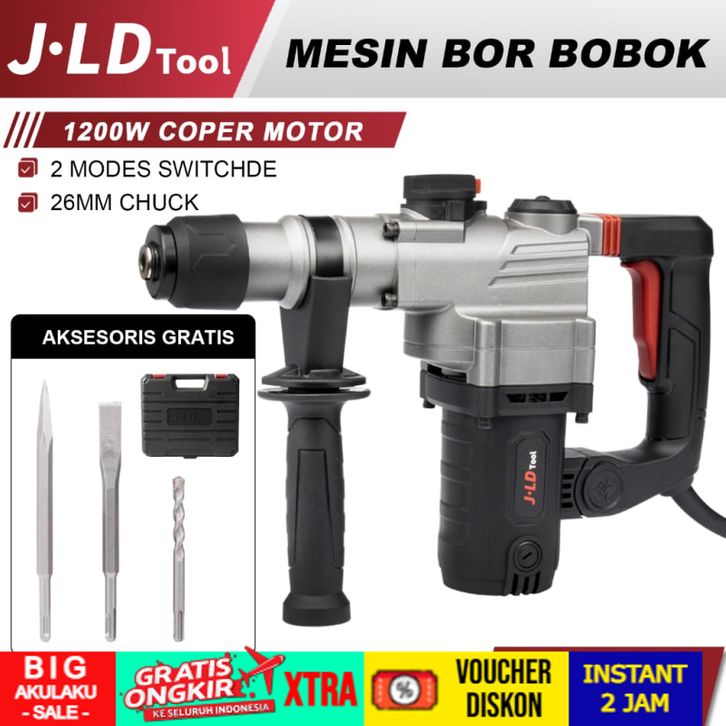 JLD 1200W Mesin Bor Bobok Beton 2 Mode 26mm Chuck Hammer Drill Bor Rotary Impact Bor Palu J26-1 Original Murah