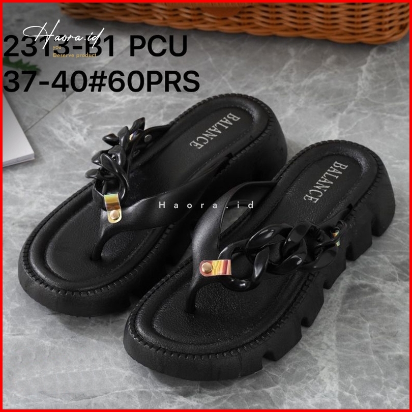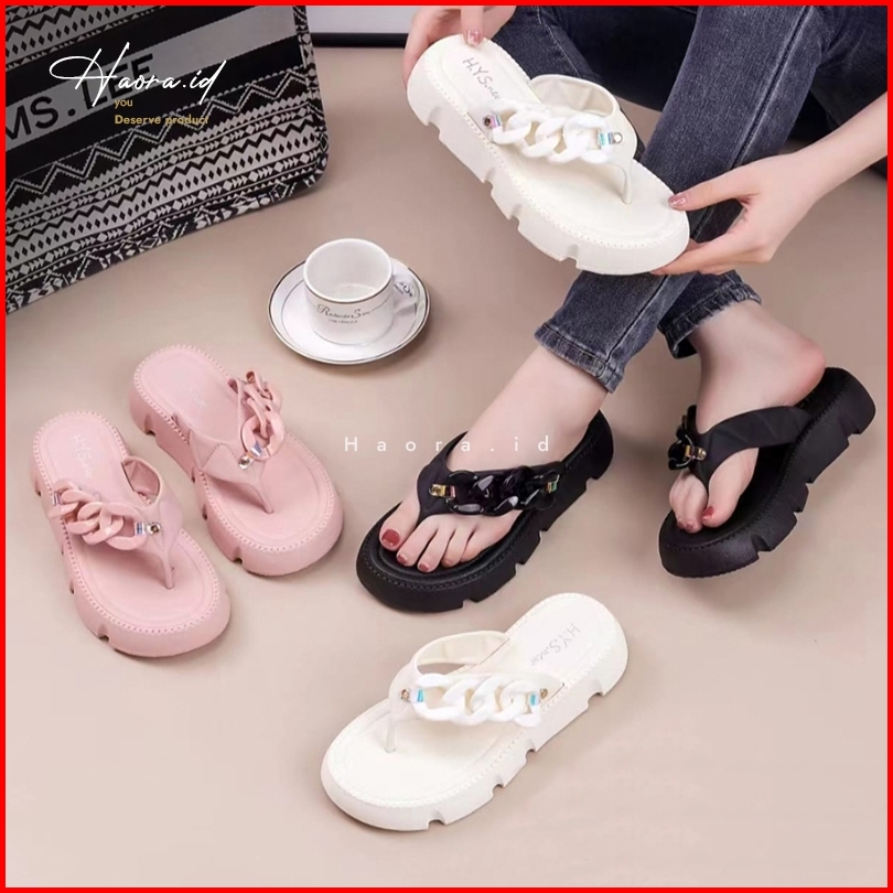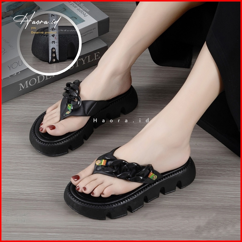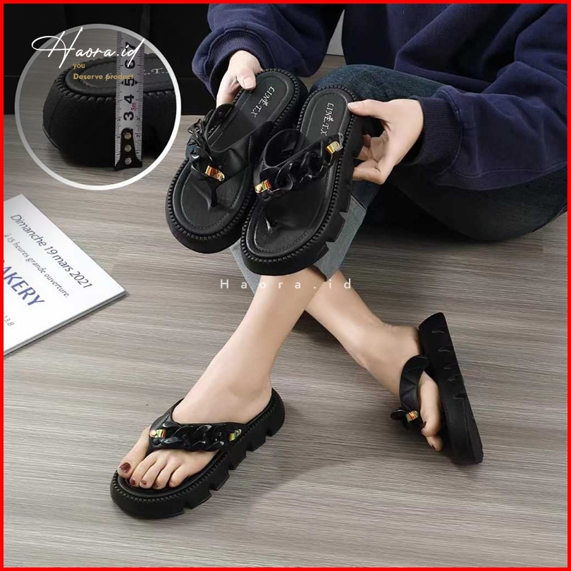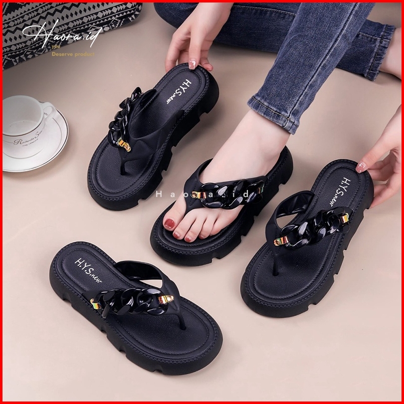 Sandal Jepit Tinggi Wanita Jelly Karet Motif Rantai Sol Tebal Empuk Elastis Anti Slip Premium Mewah Elegan Terbaru 2024