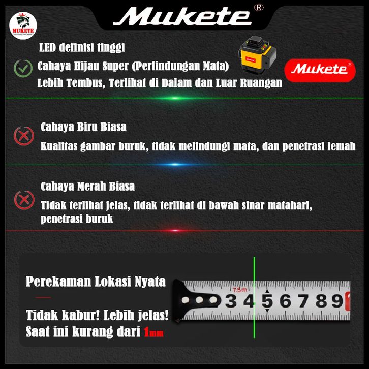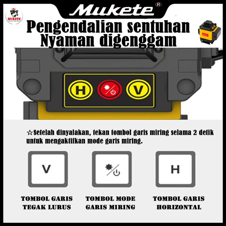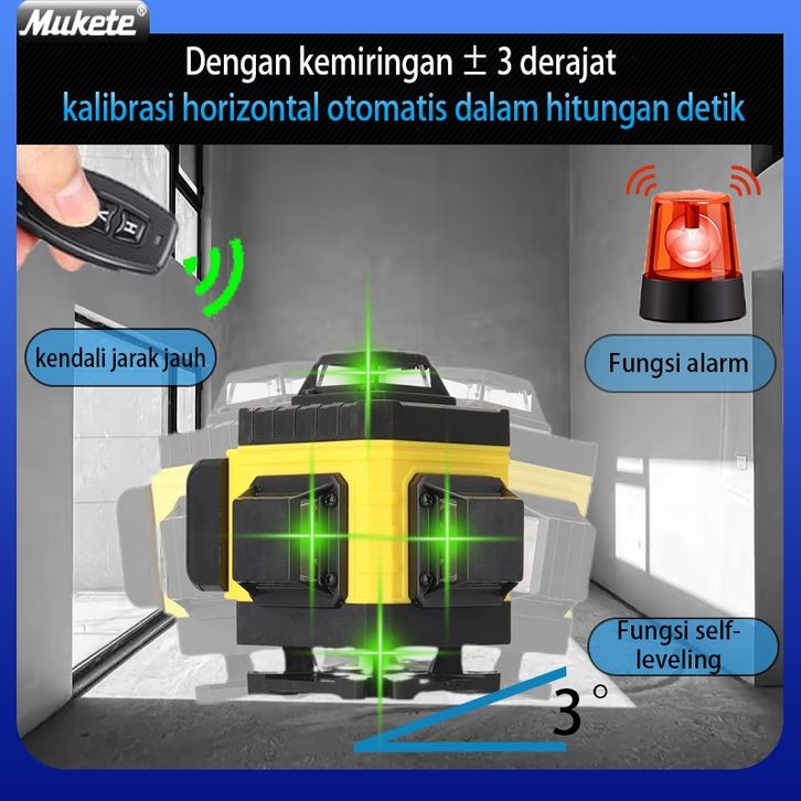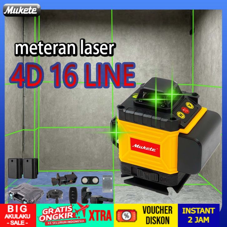 Mukete 16V 4D 16 LINE meteran laser laser level laser bangunan laser leveling laser bangunan waterpass laser keramik