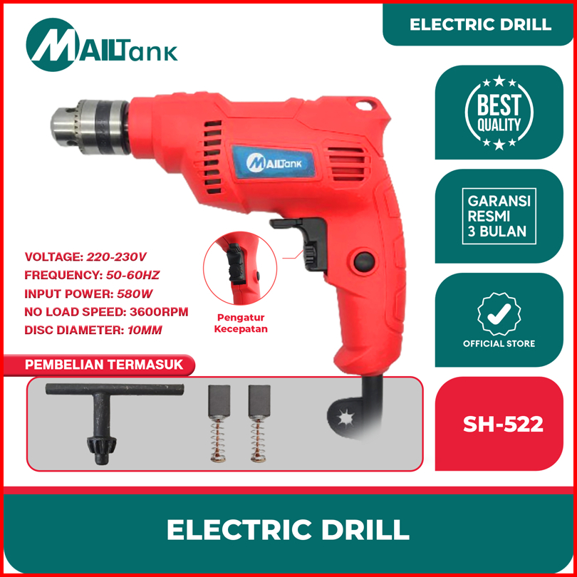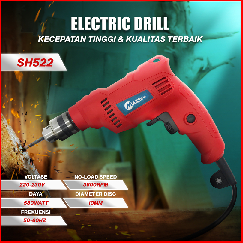 Mailtank Sh522 Bor Listrik 10mm 580w Mesin Bor Bolak Balik Untuk Bor Tembok Kayu Dan Besi