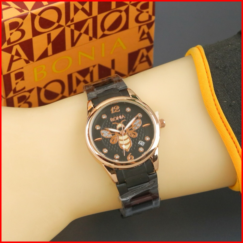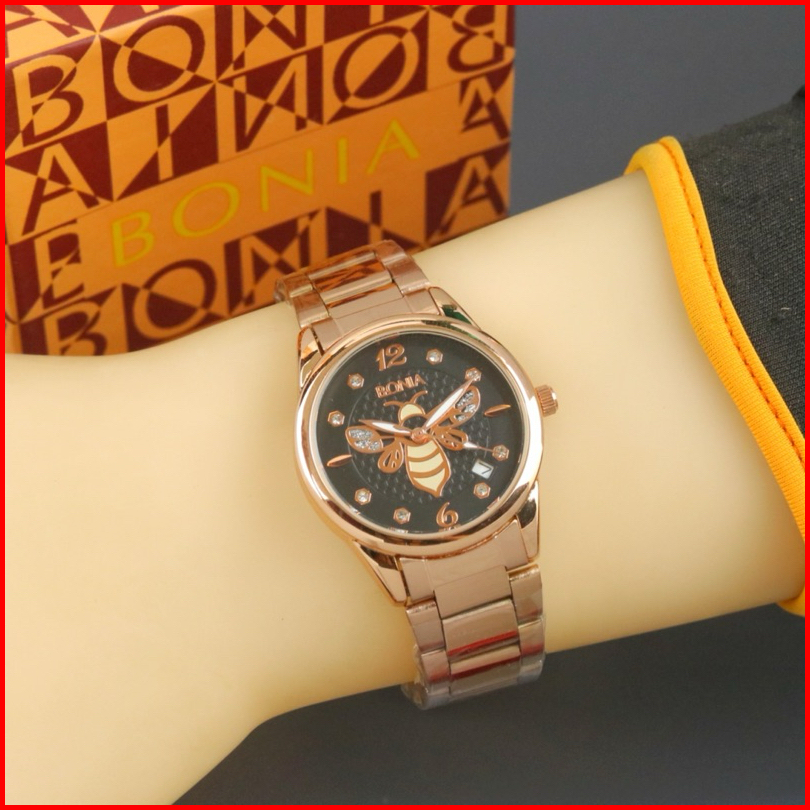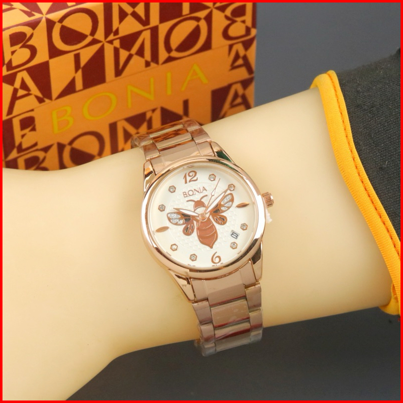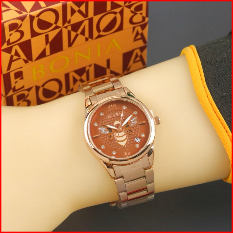 Jam Tangan Wanita Bonia Lebah Rantai Stainless Steel Tanggal Aktif Jam Tangan Fashion Cewek