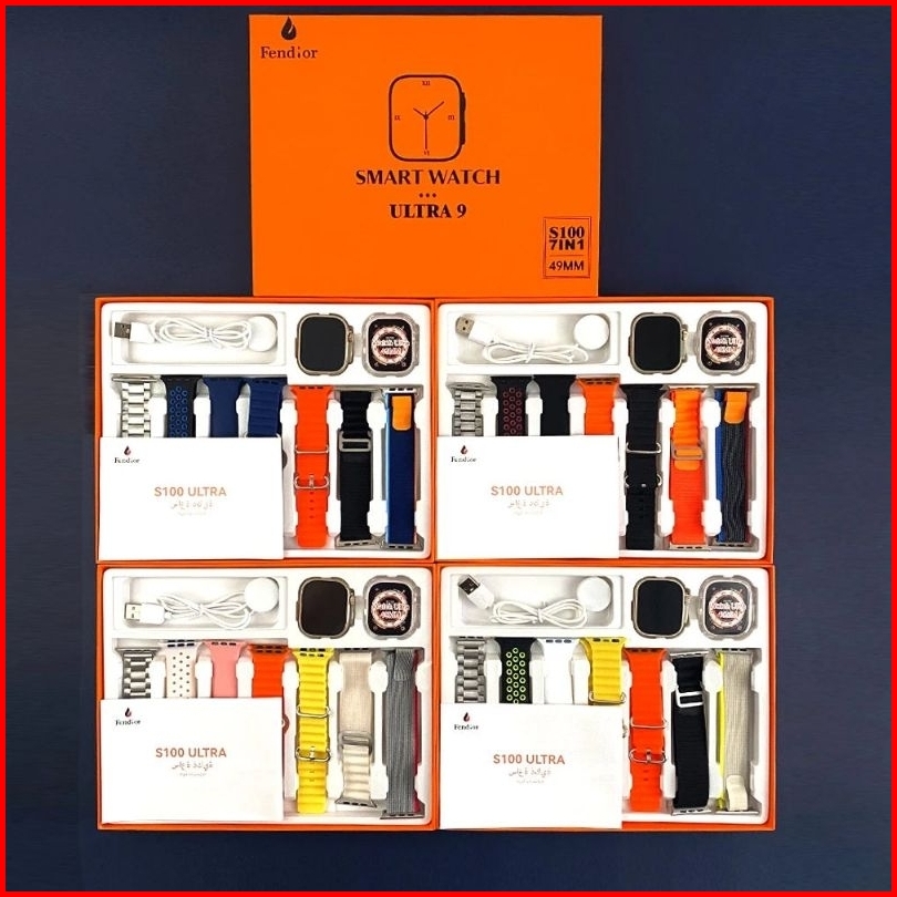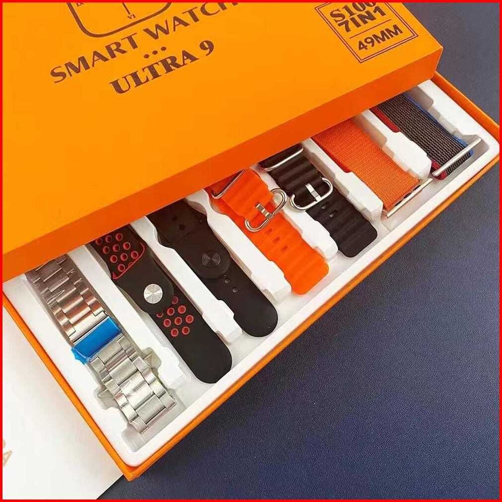 100 Ori Jam Tangan Smartwatch Ultra 9 Diameter 49mm Dapat 7 Tali Casing Transparan Tipe S100 Series 9 Ada Kalkulator Bis