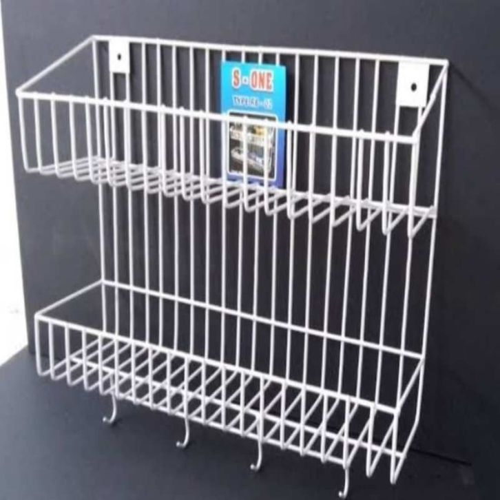 Rak Gantung Kawat Susun 2 Putih Rak Tempel Dinding Tembok Rak Bumbu Rak Shampo Rak Dinding Serbaguna
