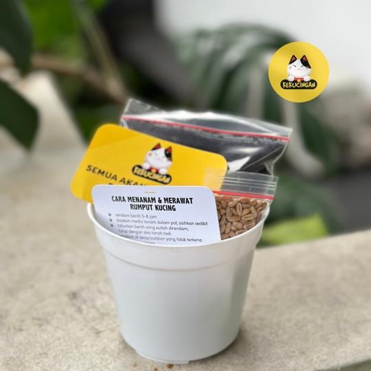 BIBIT RUMPUT KUCING / RUMPUT GANDUM PAKET LENGKAP POT/MEDIA/BENIH 10 GR