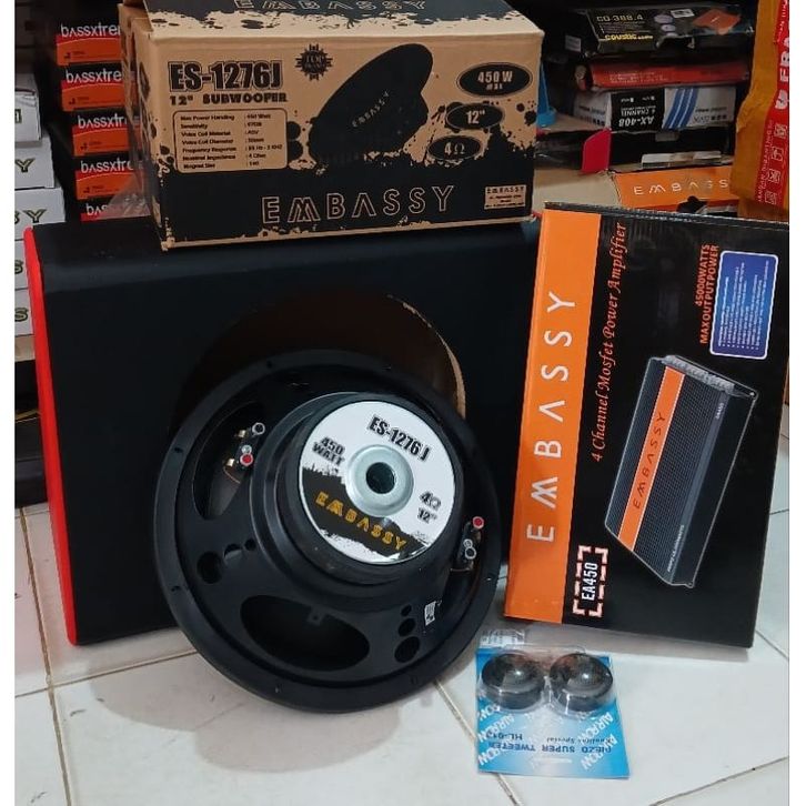 SUBWOOFER 12 INCH EMBASSY EA-450 ES-1276J POWER 4CHANEL BOX SPEAKER AKTIF AUDIO MOBIL FULL BASS BERKUALITAS