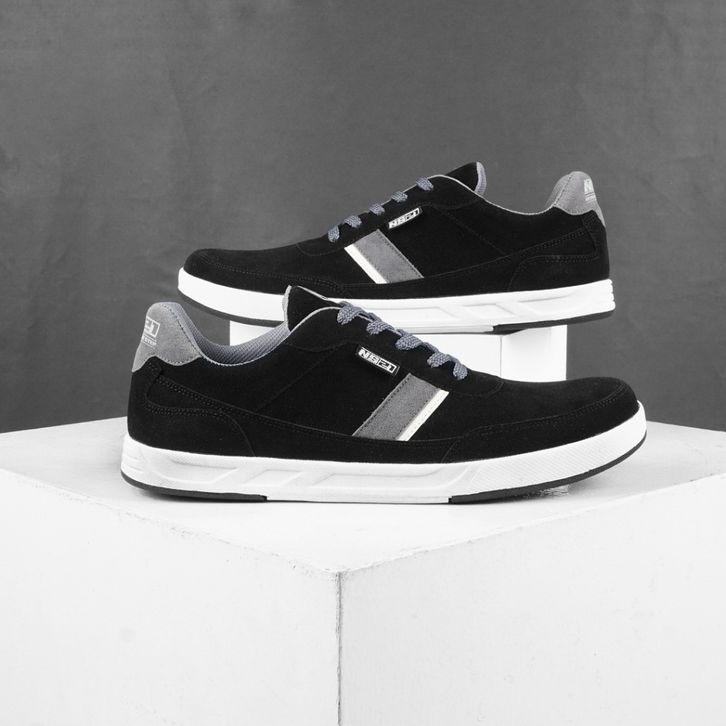 Sepatu pria sneakers casual hitam combinasi abu NS21 New