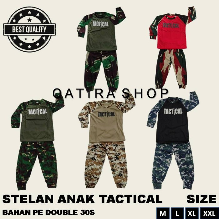 SETELAN BAJU KAOS ANAK LORENG TACTICAL TNI POLISI BAHAN PE DOUBLE 30S - ABU, M