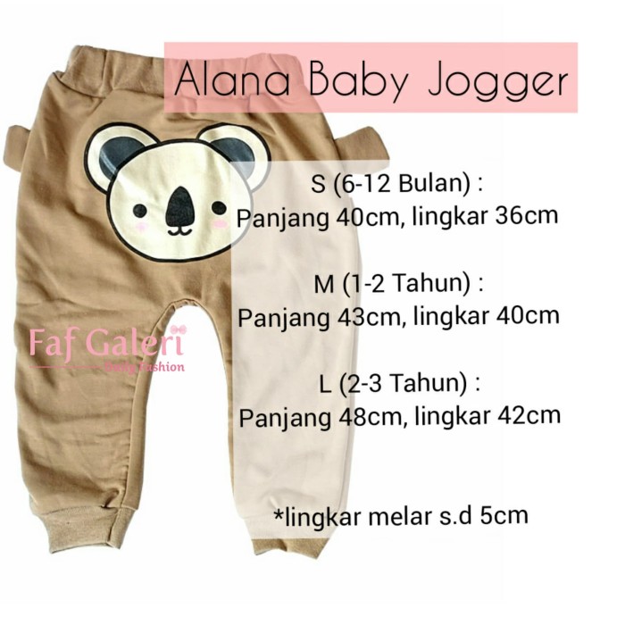 ALANA BABY JOGGER 1-3 THN - CELANA PANJANG ANAK LAKI LAKI PEREMPUAN - RANDOM COWOK, S(1 THN)