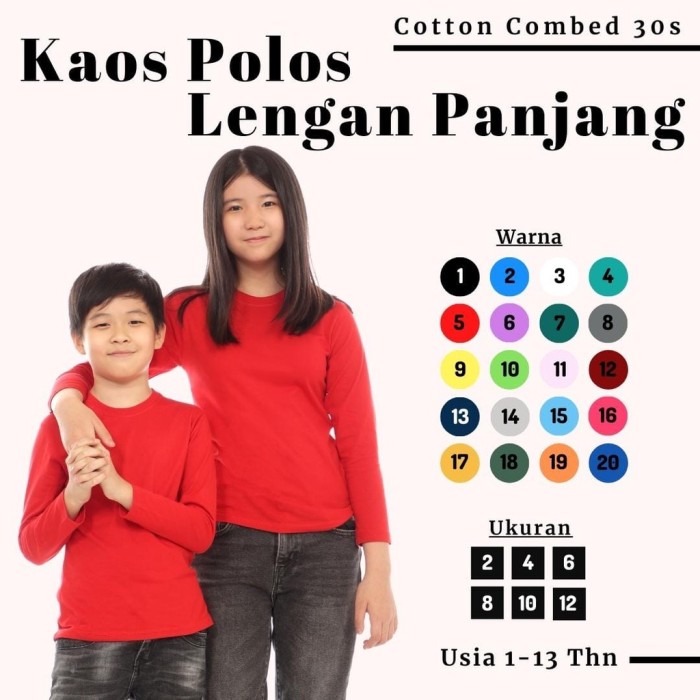 KAOS POLOS ANAK LENGAN PANJANG KATUN COMBED | COTTON COMBED - 1-2 THN