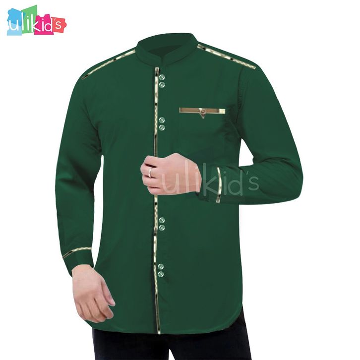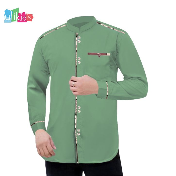 Baju Koko Dewasa Muslim Kombinasi Batik Lengan Panjang Bahan Adem Serap Keringat Terkini - Fashion Pria