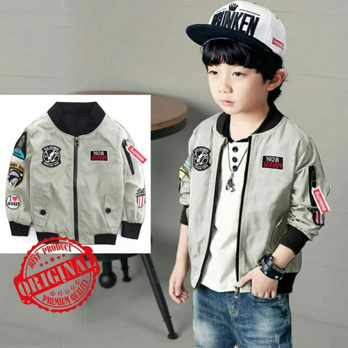 JAKET KIDS BOMBER ANAK LAKI LAKI KID MICKEY 3 4 5 6 7 TAHUN BAJU COWOK - 3-4 TAHUN, HITAM