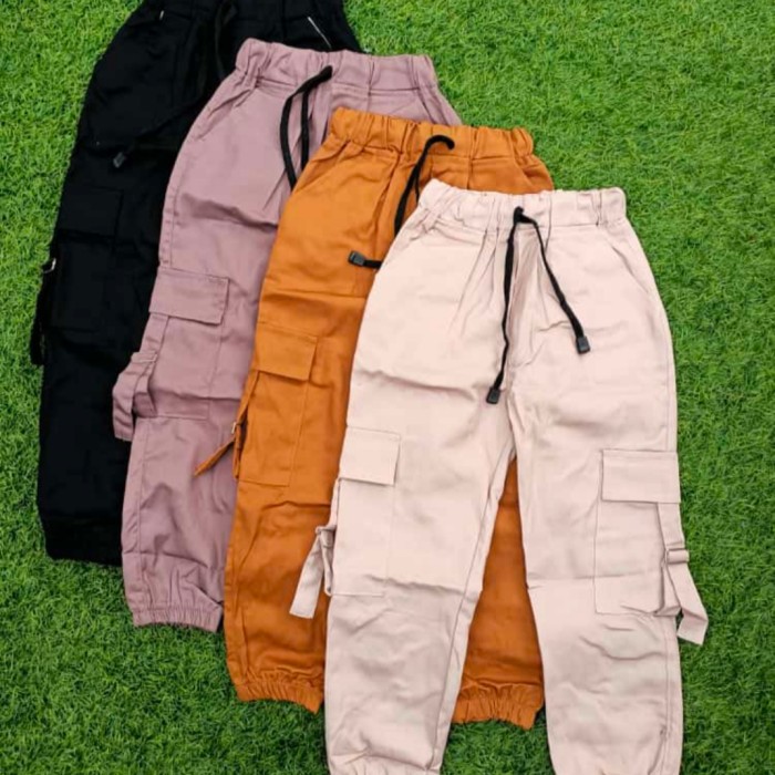 CELANA PANJANG JOGER CARGO ANAK PEREMPUAN 1-8 TAHUN - COKELAT, S(1-2TH)