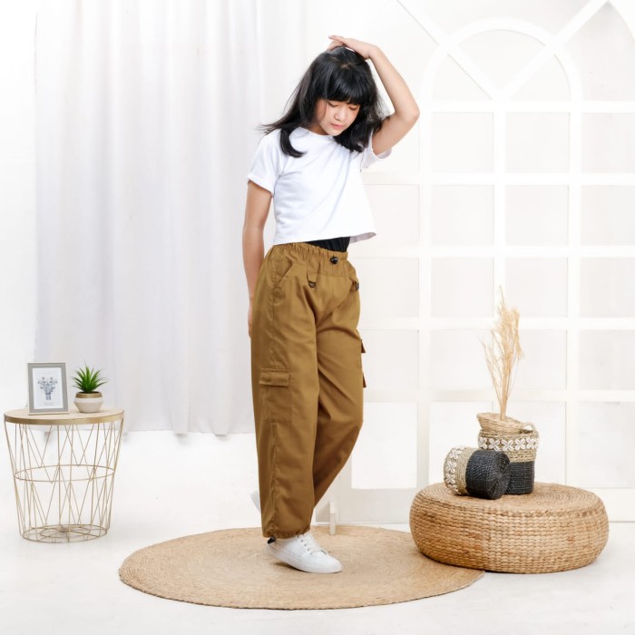 CELANA CARGO PANJANG ANAK PEREMPUAN KOREAN STYLE 1-13 TAHUN - ARMY, S(1-2TH)